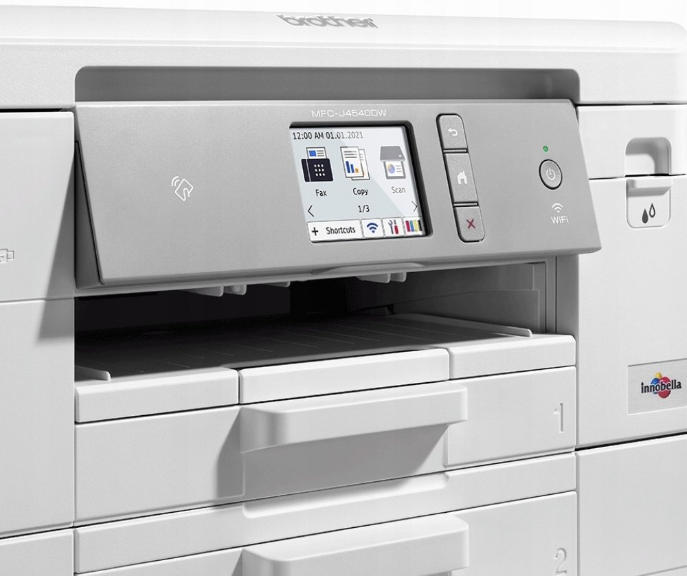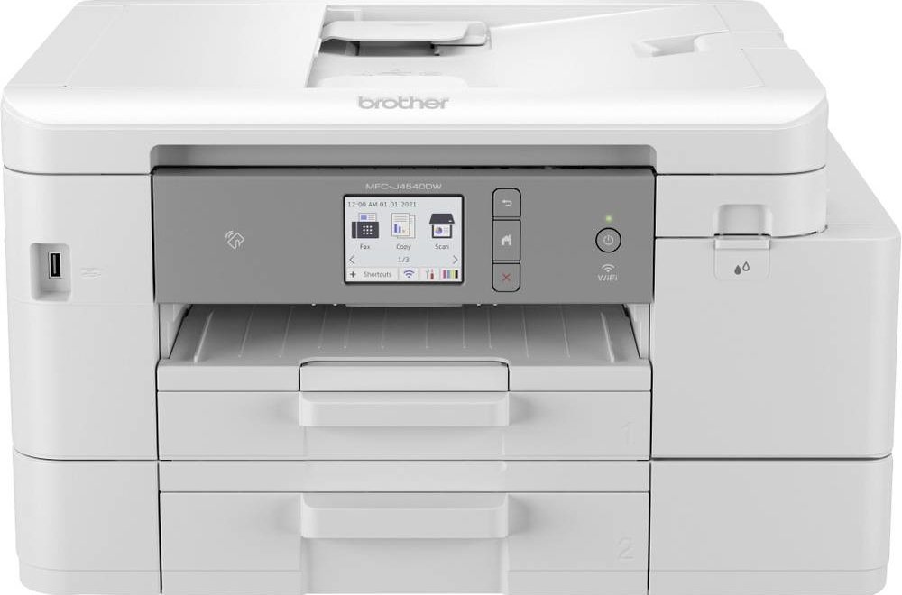 Brother MFC-J4540DW. Tisková technologie: InkJet, Tisk: Barevný tisk, Maximální rozlišení: 4800 x 1200 DPI. Kopírování: Barevné kopírování, Maximální rozlišení kopie: 1200 x 1200 DPI. Skenování: Barevné skenování, Rozlišení optického skenování: 1200 x 2400 DPI. Faxování: Barevné faxování. Oboustranné funkce: Kopírovat, Vytisknout. Maximální velikost papíru série A standardu ISO: A4. Wi-Fi. Přímý t...