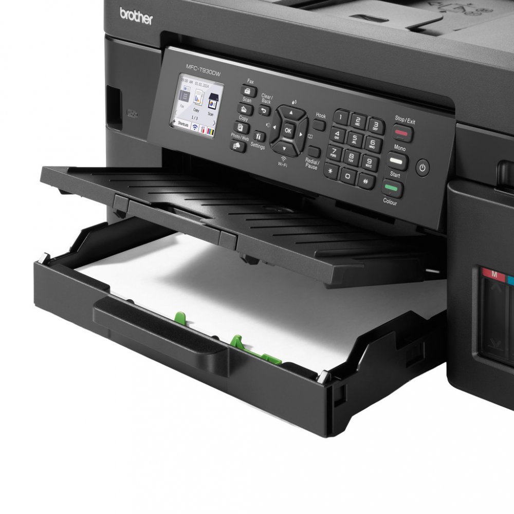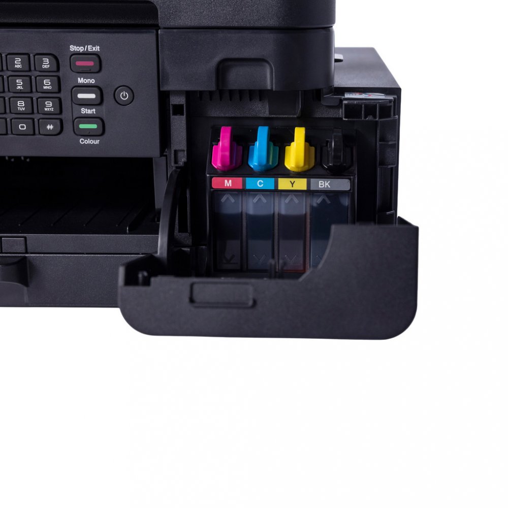 Inkoustová tiskárna Brother je praktickým a spolehlivým parťákem pro kancelářské využití. Díky kompaktnímu multifunkčnímu provedení je připravená kopírovat, skenovat a tisknout a je tedy skvělým řešení pro standardní práci s dokumenty. Tento model spadá do kategorie tiskáren s barevným inkoustem. Během barevného tisku dosahuje inkoustová tiskárna Brother MFC-T930DW rychlosti 26 stran za minutu. Nejvyšší rozlišení tisku této inkoustové tiskárny má hodnotu 6000 x 1200 DPI, je v případě textu dostatečné, kvalitou obrázků bude vyhovovat spíše méně náročným uživatelům. Díky bezokrajovému tisku můžete využít celou plochu papíru. Velice praktický je oboustranný tisk, ten je u tohoto modelu automatický. Počítač můžete s tiskárnou propojit přes rozhraní USB, LAN a WiFi. Již vám nebudou překážet kabely a využijete pohodlí tisku na dálku. Uživatelé elektroniky Apple si oblíbí funkci AirPrint, která umožňuje tisk z nejrůznějších zařízení. Aby byl přehled co nejlepší a obsluha jednoduchá, tak má inkoustová tiskárna...