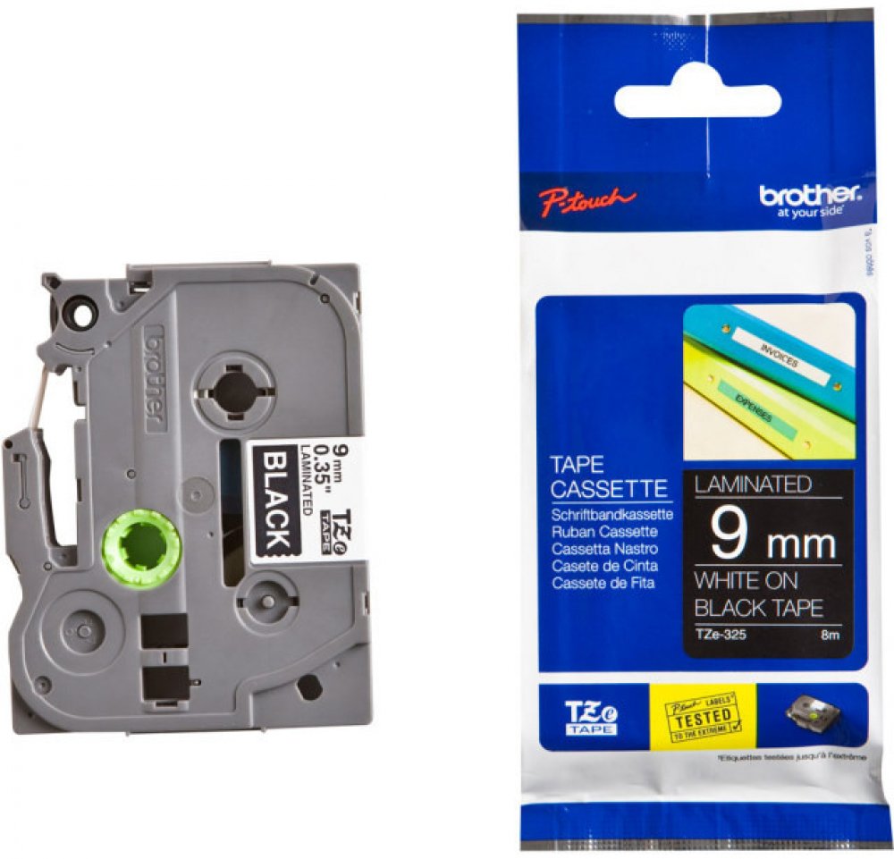 Brother Originální páska TZE-325 9 mm bílý tisk na černém podkladu