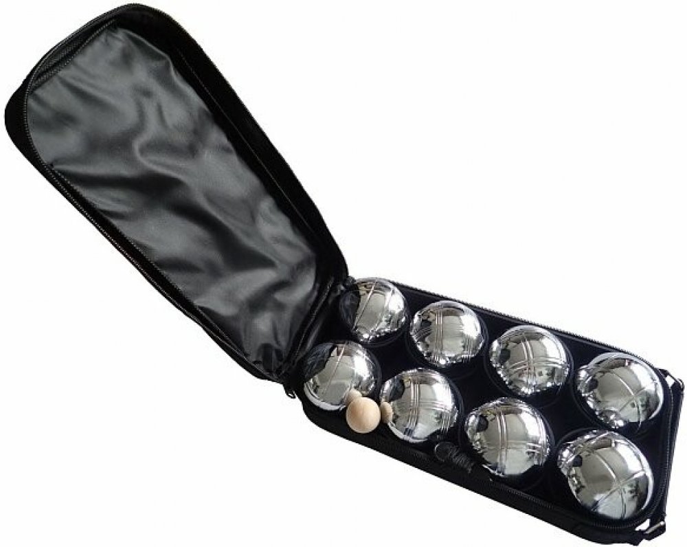 Petanque 6 koulí (kovové chromované) 72 mm v šitém textilním pouzdře. Doporučeno pro 2 - 3 hráče. Petanque má 3 vzory koulí po dvou kusech. Původ této oblíbené venkovní hry je ve Francii.