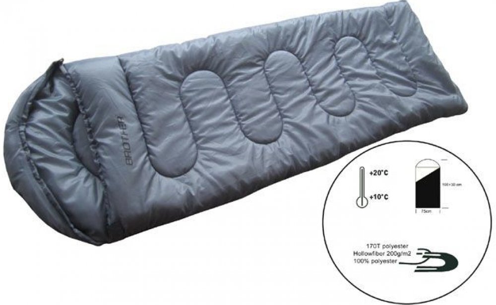 Spací pytel s podhlavníkem BROTHER PILOT 1 SPP1 pro běžné použití v letních měsících. | Spací pytel s podhlavníkem BROTHER PILOT 1 SPP1 pro běžné použití v letních měsících. Spacák je vyroben v délce 220 cm, kde 190 je určeno pro tělo a 30 pro hlavu, šířka spacáku je 75 cm. Pro svrchní materiál spacáku byl použit polyester 190 T a vnitřní vložka je pak vyrobena z tafatta a dutého vlákna 150 g/m2. Díky tomuto materiálu je spacák vhodný pro použití až od 5°C. Komfortní rozmezí teplot je +15°C až +25°C. Spací pytel lze snadno čistit díky polyesterové vnitřní vložce. Rozměry: 220 (190+30)x75 cmTento pytel je určen pro teploty od +5°C. Vnější materiál: polyester Vnitřní vložka: taffeta.Vnitřní výplň: duté vlákno 150g/m2Určení od +5°C. Zabalený spacák, má rozměry 38 x 18 cm a průměr 17 cm. Tento spací pytel lze snadno čistit díky polyesterové vnitřní vložce.
