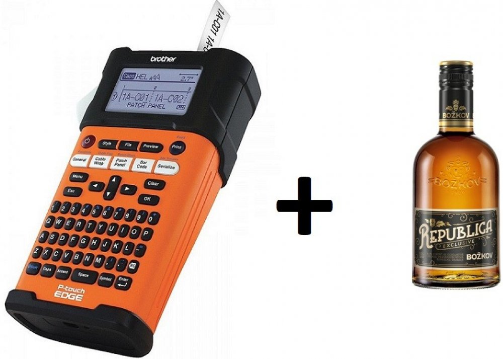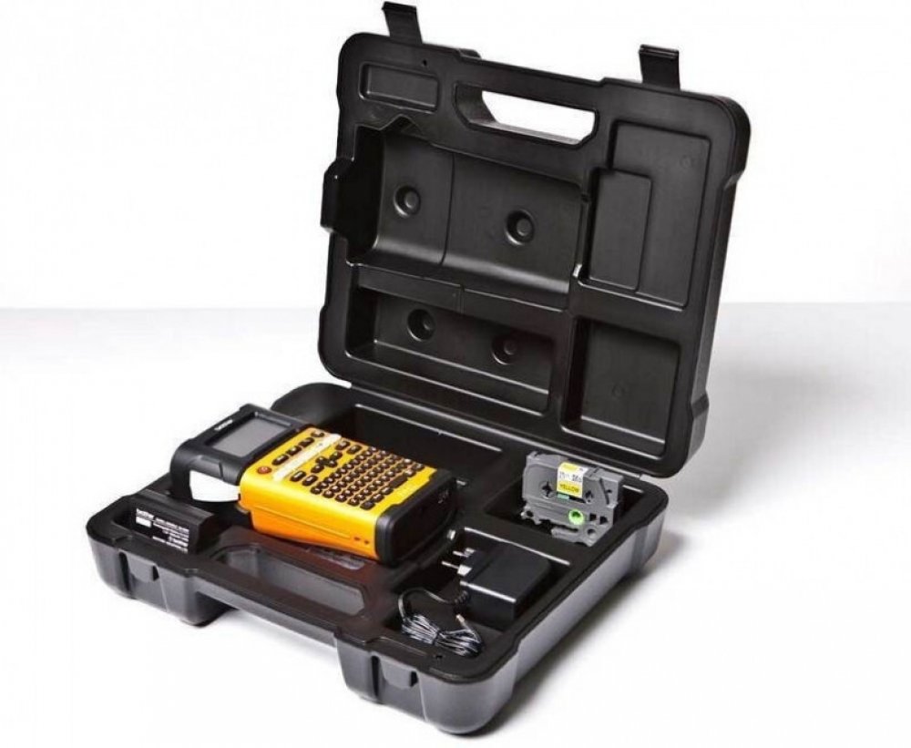 - Obsahuje kazetu s páskou, dobíjecí Li-Ion blok, AC adaptér a praktický kufřík