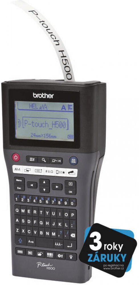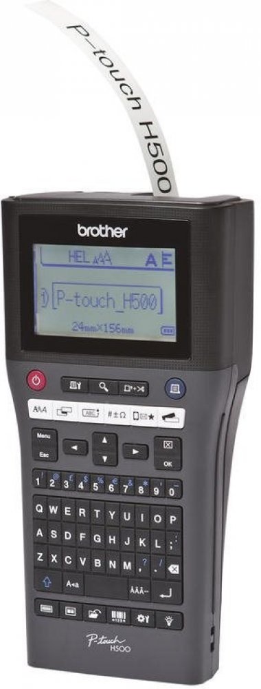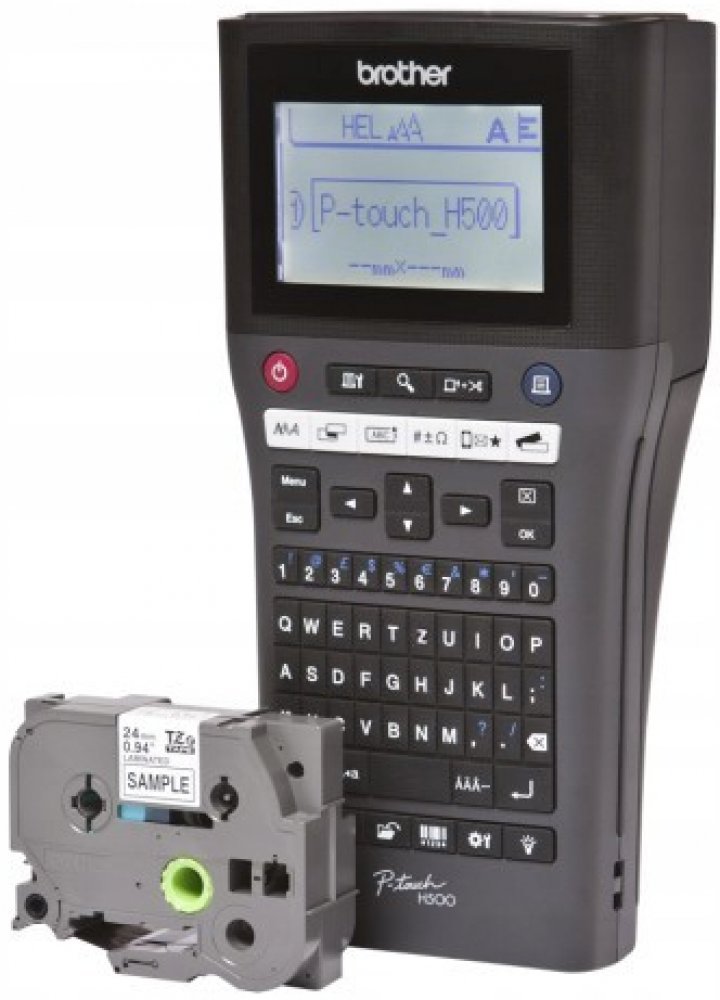 Ruční tiskárna štítků s možností připojení a tisku z PC, pro pásky 3,5-24 mm.Ruční popisovač PT-H500 je vhodný do skladů i terénu. Štítky lze vytvářet pomocí klávesnice nebo je možné tiskárnu připojit k PC a pomocí P-Touch editoru tisknout. Součástí dodávky je páska 24 mm (černé písmo na bílém podkladu) USB kabel a řemínek na ruku. Jako volitelné příslušenství je možné dokoupit Li-ion akumulátor B...