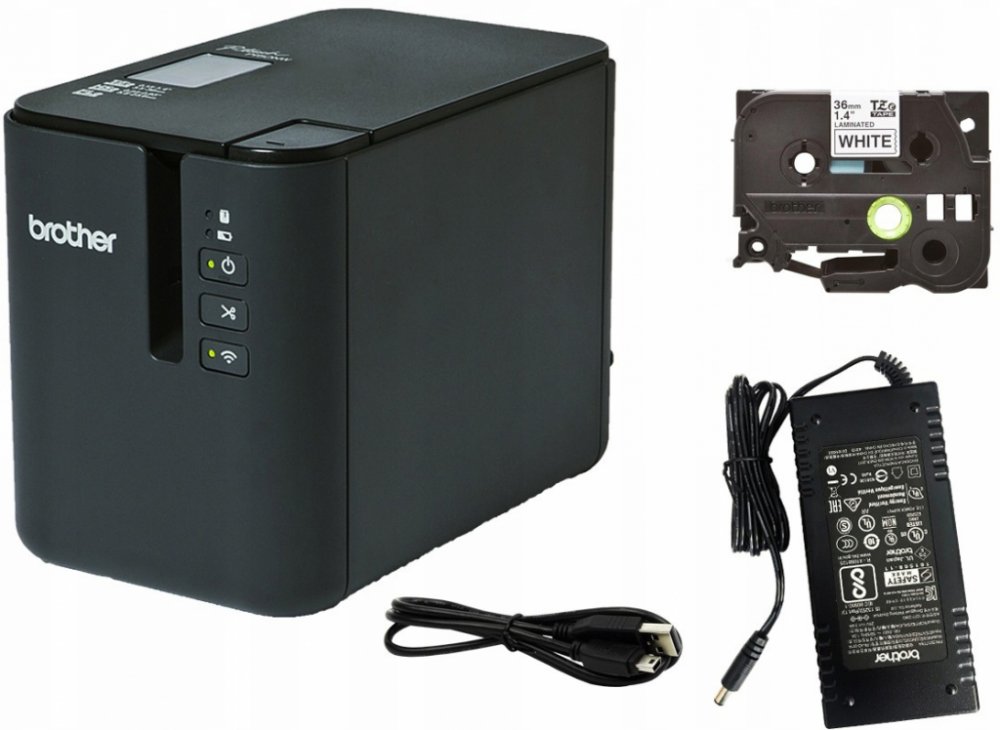 Profesionální tiskárna PT-P900W tiskne na TZe pásky do šířky 36 mm a je ideální pro značení kabelů, správu budov, archivaci dokumentů, označování majetku a vytváření štítků na přání kdekoliv a kdykoliv je potřeba. Štítky můžete vytvářet okamžitě z vašeho telefonu nebo tabletu, aniž byste museli zapínat počítač. Aplikace Brother iPrint & Label vám umožní bezdrátové připojení k PT-P900W a navržení jednoduchého štítku ze zařízení s iOS nebo Android. Pokud potřebujete rychle popsat kabeláž nebo zařízení, použijte aplikaci Brother Cable Label Tool. Napájení je řešeno skrze napájecí adaptér. Součástí balení je také kazeta s páskou TZe-261.