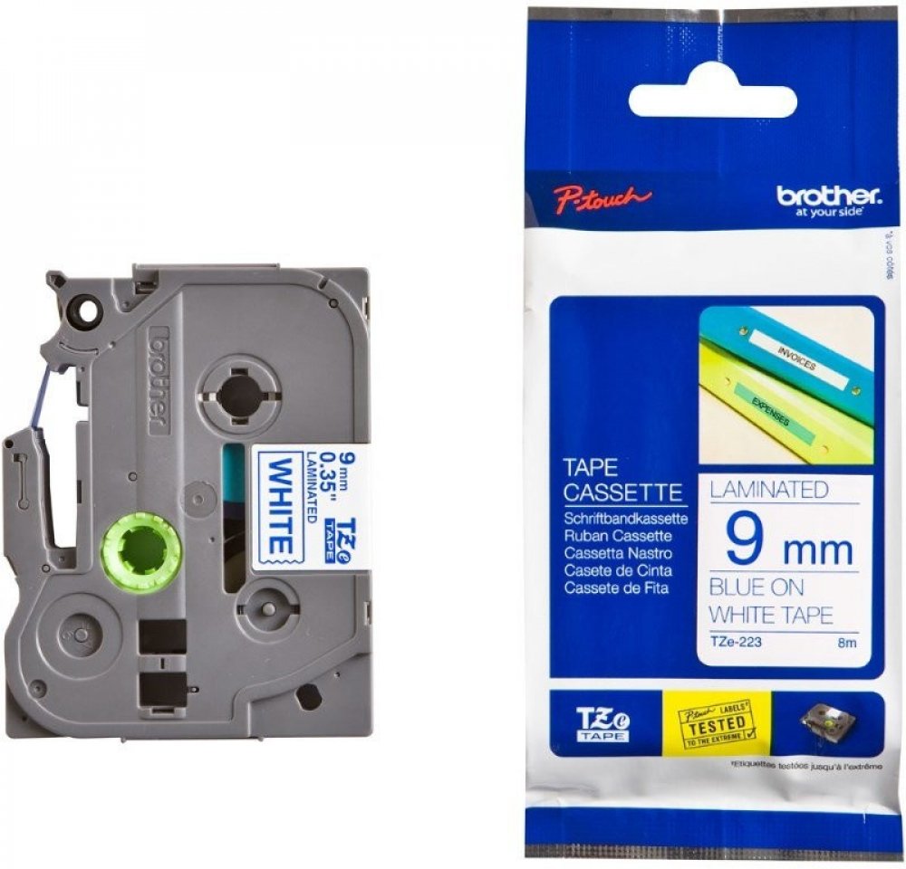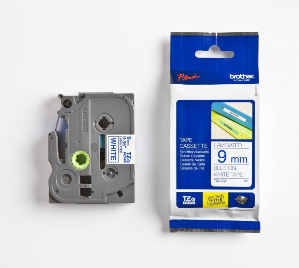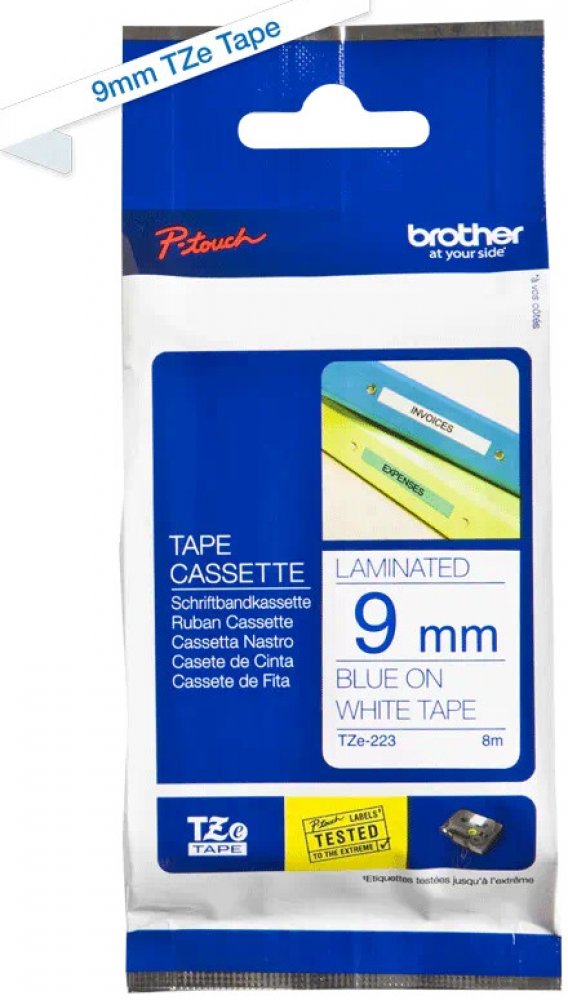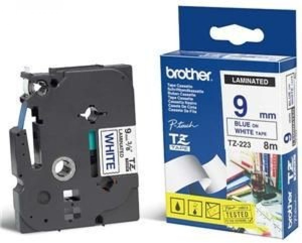 Standardní TZ/TZE-223 páska, 9 mm x 8 m, barva bílá/modrá, laminovaná, je určená do všech typů tiskáren štítků Brother. Využívá se pro výrobu šablon elektroc hemického značení. TZE pásky nahrazují modely pásek TZ. Jedná se o ekologickou verzi pásek TZ. Brother patentovaná technologie laminovaných pásek je dostatečně odolná vůči teplotním ...