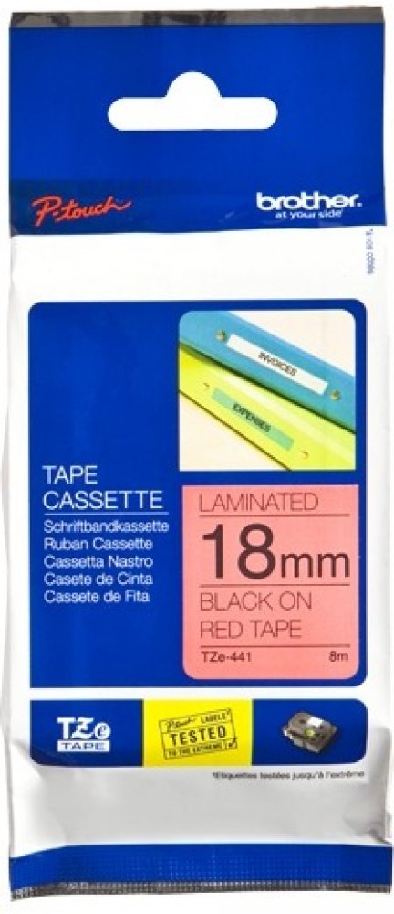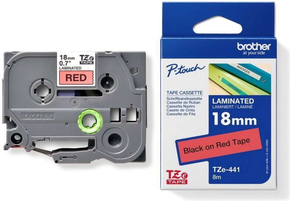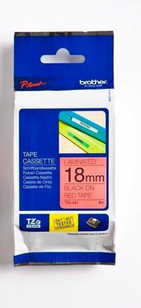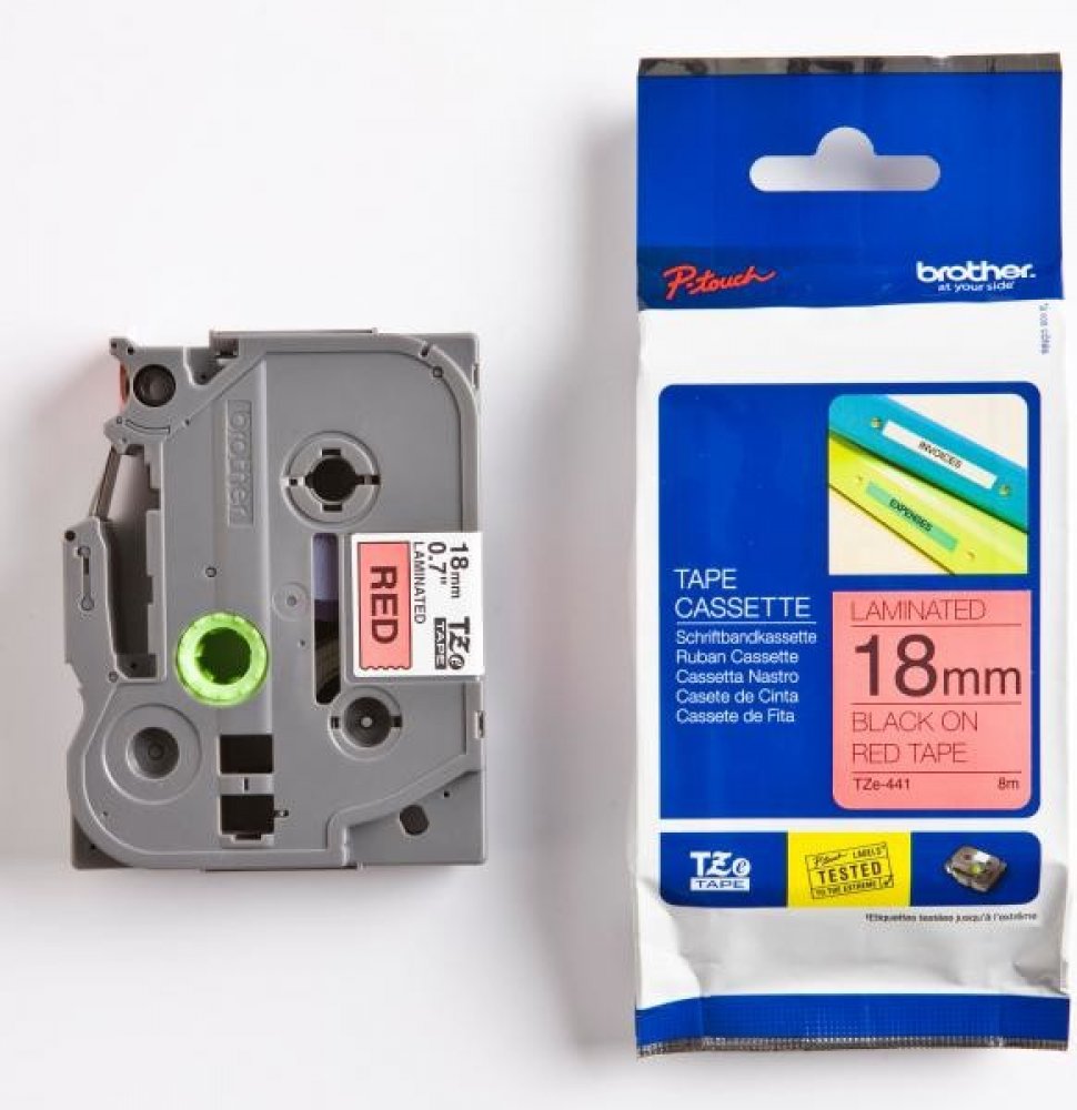 Originální kazeta s laminovanou páskou TZe-441 kompatibilní s širokou řadou tiskáren Brother P-touch je zvláště všestranná díky své snadno čitelné černé a červené barvě - ideální pro domácnost, kancelář a další pracoviště.