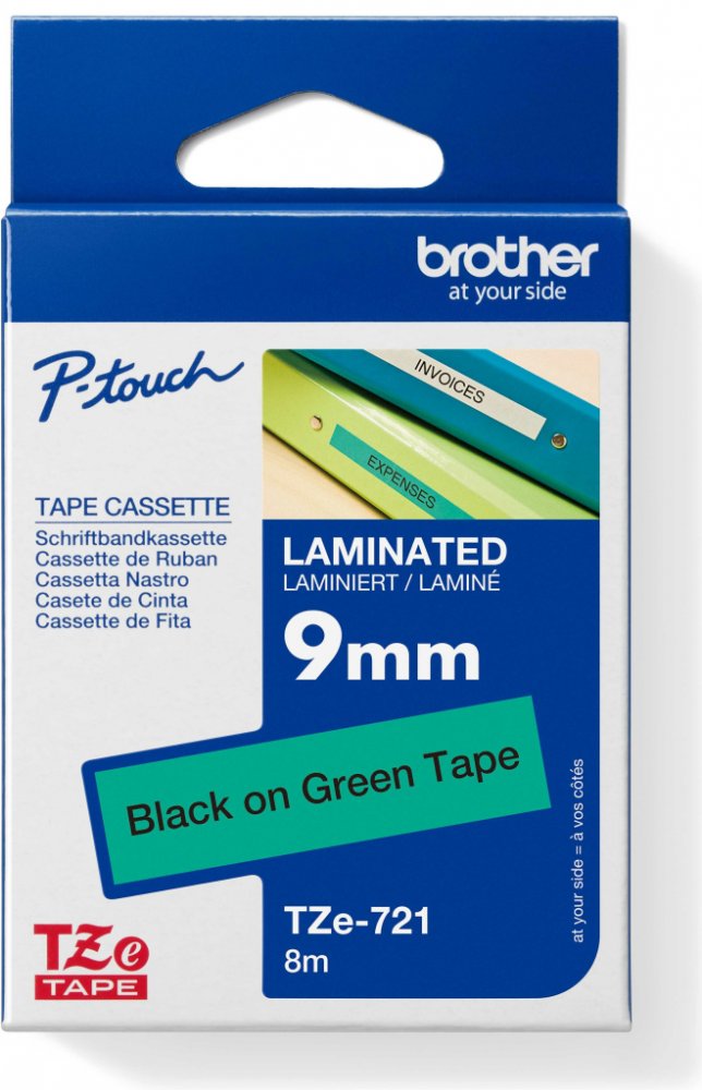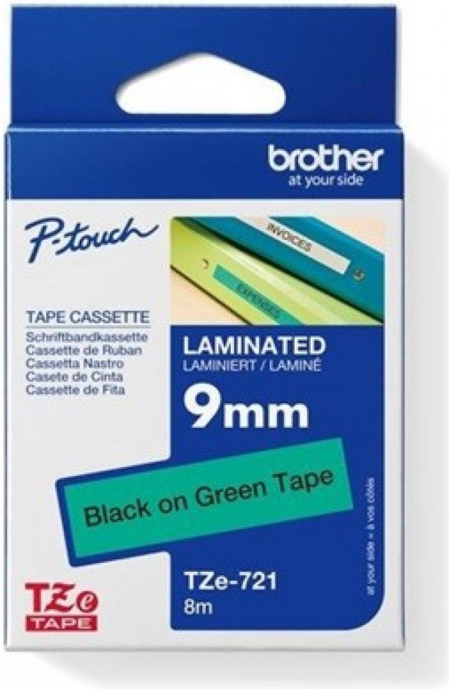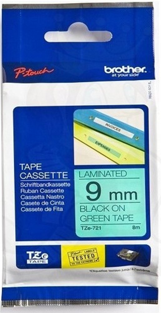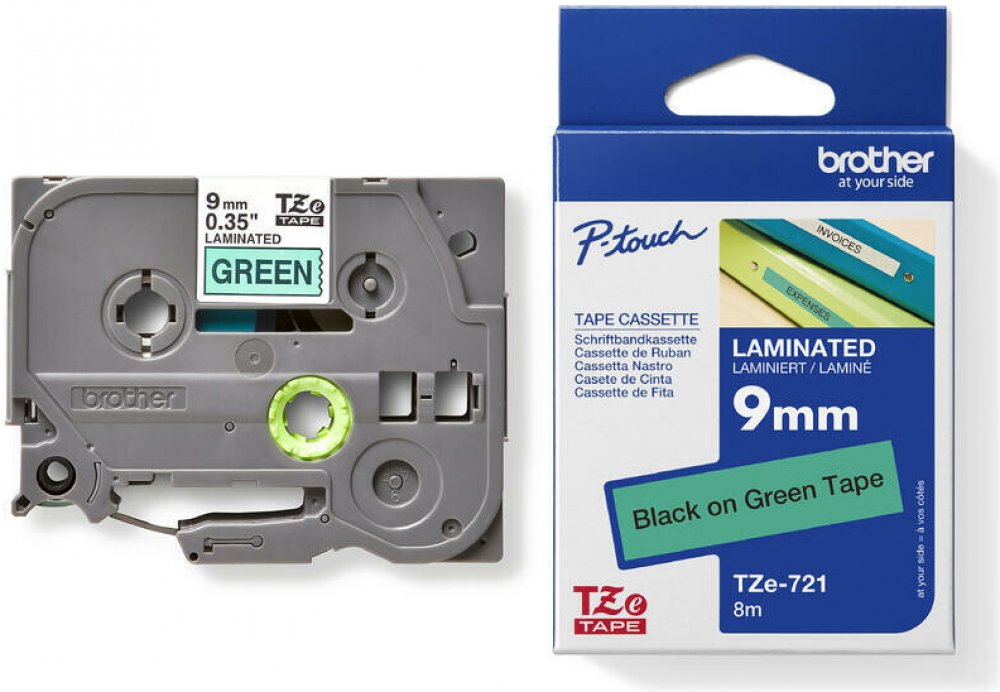 Brother TZE-721, černý tisk zelený podklad 8 m x 9 mm