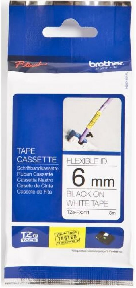 Originální Páska Brother TZE-FX211. Kompatibilní tiskárny: Brother PT-D210, Brother PT-H110, Brother PT-D210VP, Brother PT-E110VP, Brother PT-H107B.