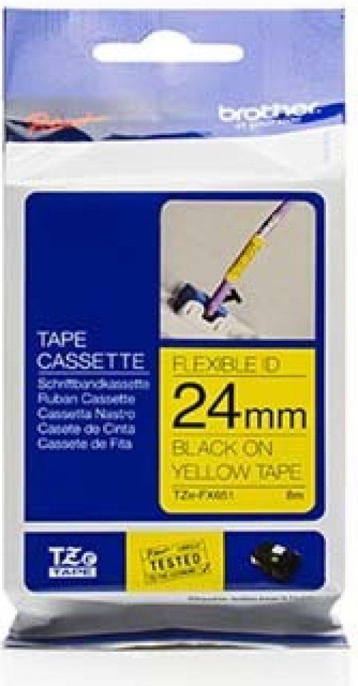 Brother TZE-FX651 - originální páska do tiskárny štítků, Brother, TZE-FX651, černý tisk/žlutý podklad, laminovaná, 8m, 24mm, flexibiBrother TZE-FX651 - originální páska do tiskárny štítků, Brother, TZE-FX651, černý tisk/žlutý podklad, laminovaná, 8m, 24mm, flexibi