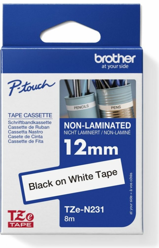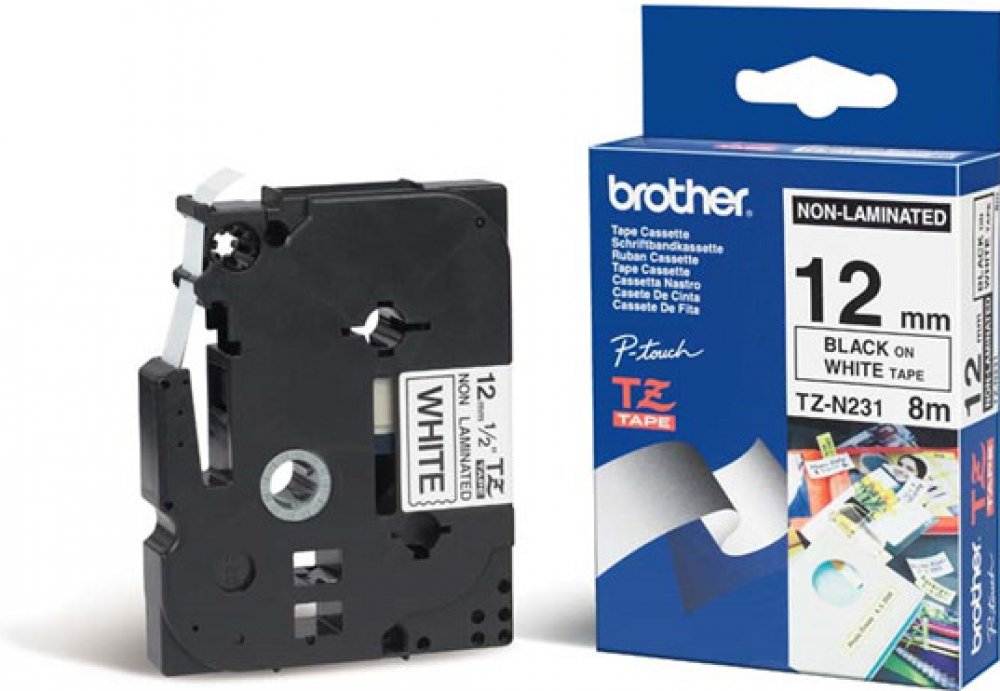 Originální kazeta Brother TZe-N231 s nelaminovanou bílou páskou. Vhodné pro běžné použití v pracovním nebo domácím prostředí. Je kompatibilní s tiskárnami Brother P-touch.