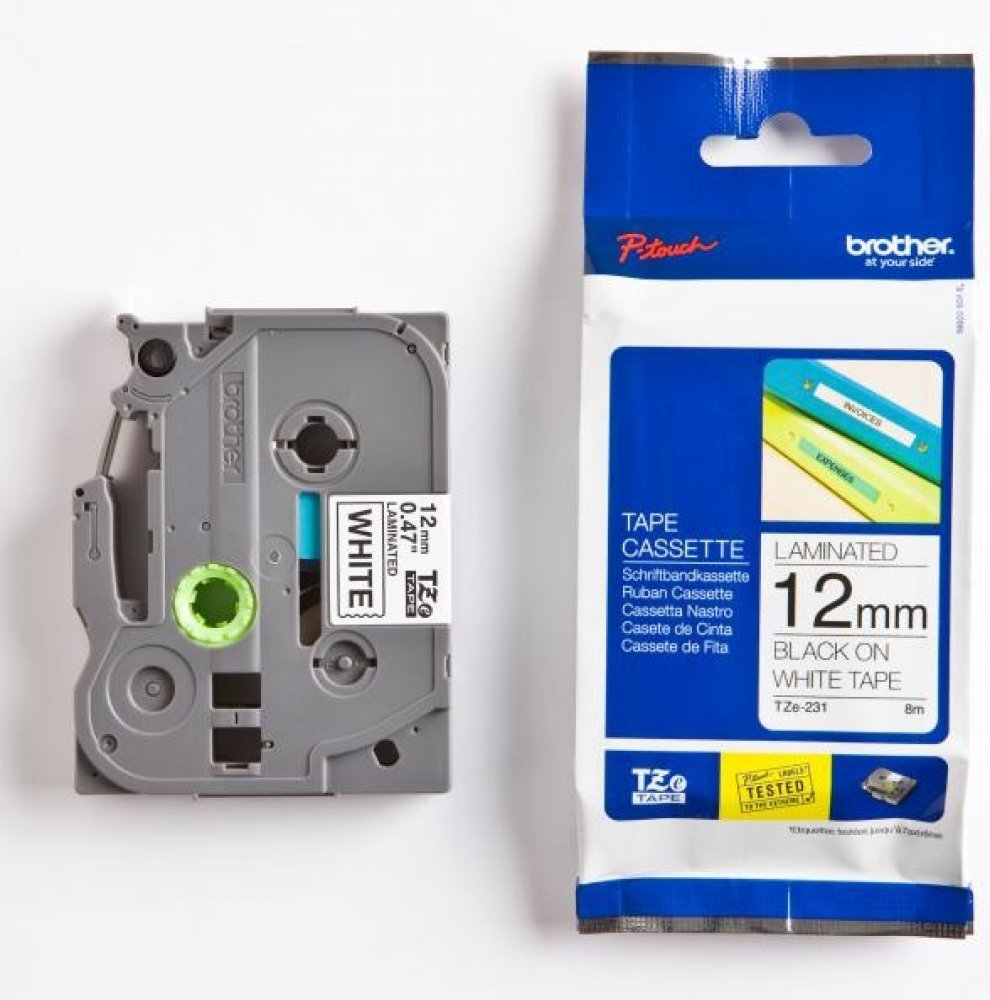 Kazeta TZe-S231 s laminovanou páskou s černým tiskem na bílém podkladu je stejně praktická v domácnosti, kanceláři či pracovišti. Může být použita k identifikaci obsahu šanonů, regálů až po USB flash disky, značení kabeláže a dalších zařízení.