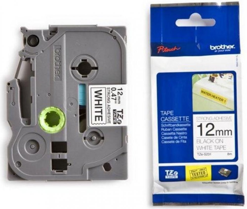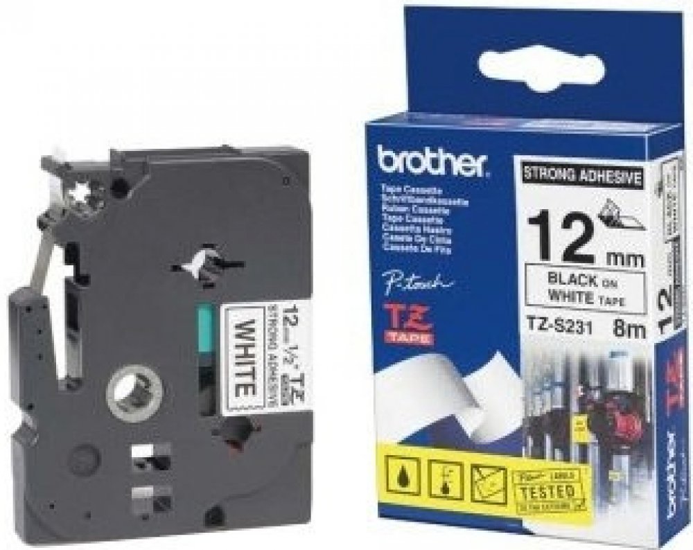 Brother TZE-S231, bílá/černá, 12mm