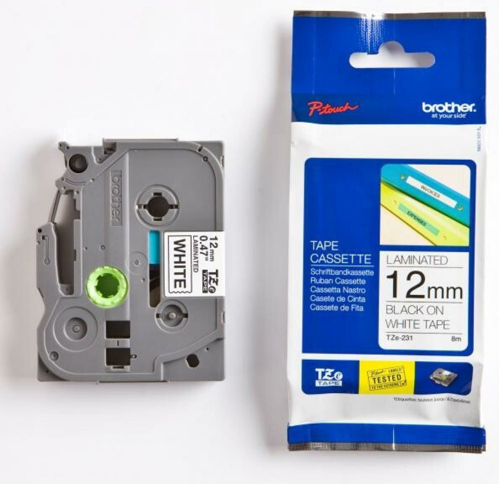 Originální Páska Brother TZE-S231. Kompatibilní tiskárny: Brother PT-D210, Brother PT-H110, Brother PT-D410, Brother PT-E110VP, Brother PT-H107B.