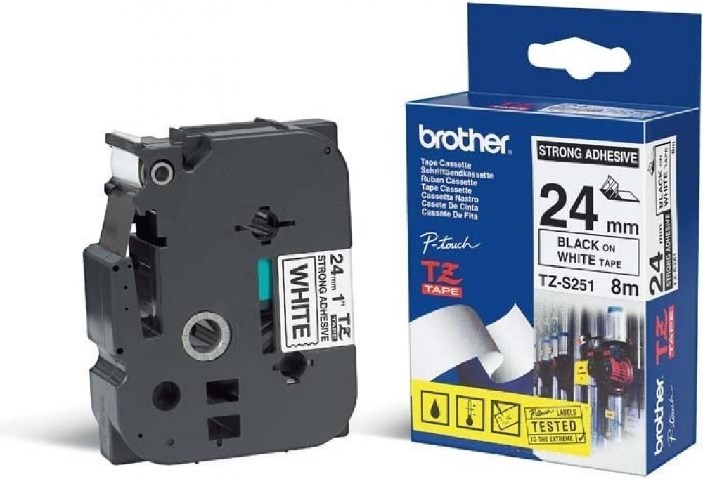 Kazeta s páskou je určena pro tiskárny popisků kabelů Brother. Podklad bílý, písmo černé. Šířka 24 mm, délka 8 metrů. Jde o originální a odolnou kazetu s páskou přímo od výrobce Brother. Je kompatibilní s modely z řad P-touch.