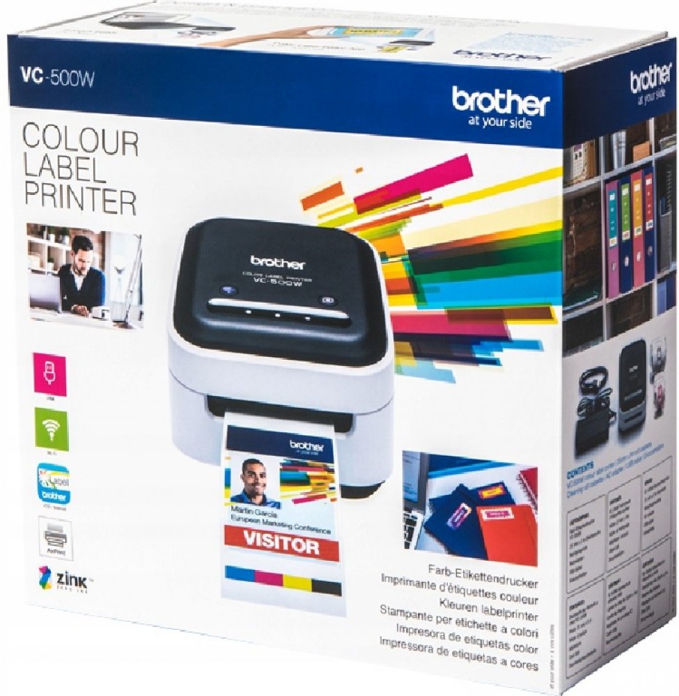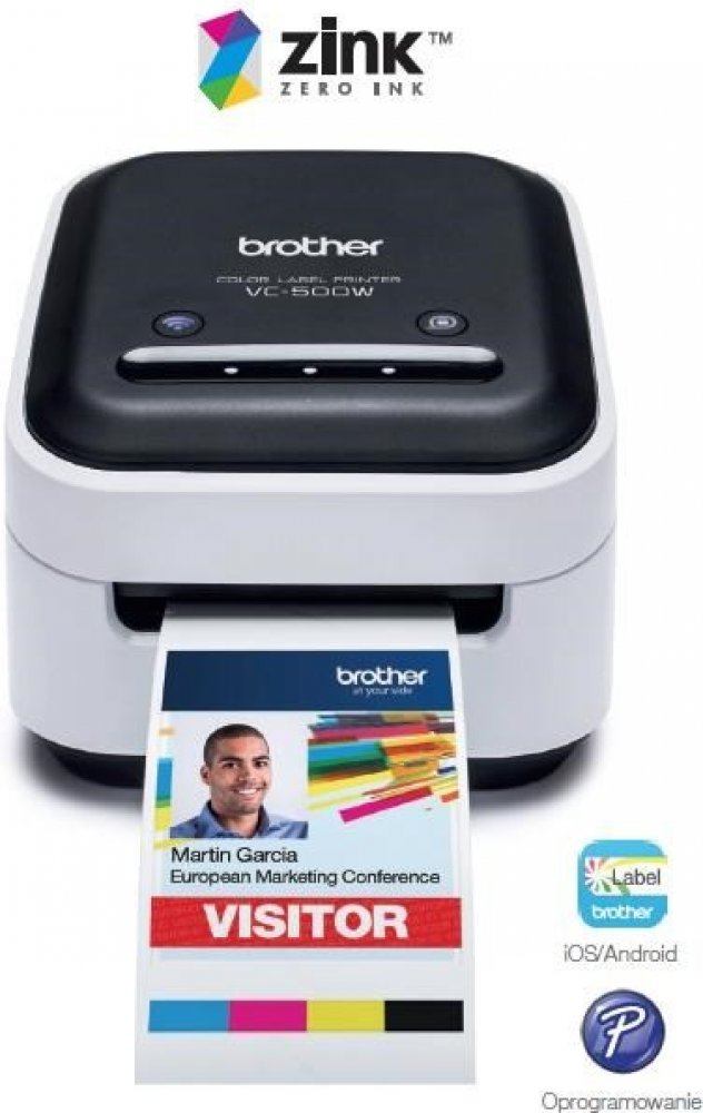 Plnobarevná tiskárna štítků VC-500WTiskárna VC-500W je vybavená technologií tisku ZINK® Zero-Ink®. Speciální barevné krystaly v papíru jsou aktivovány teplem a vytvářejí plně barevné štítky bez nutnosti použití dalších inkoustových kazet.