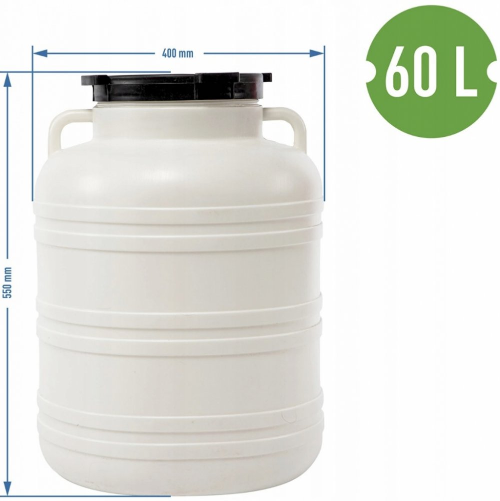 Plastový sud se šroubovacím uzávěrem, ideální pro přípravu zelí nebo okurek. Vhodný rovněž jako barel na vodu.