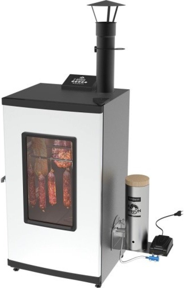 BROWIN Elektrická udírna s generátorem kouře dragON digitální 65L Moderní, elektrická udírna s generátorem kouře dragON Jet 1 a příslušenstvím je univerzální, vysoce kvalitní sada, která zajišťuje komfort používání a vynikající kulinářské efekty. Stačí připojit udírnu, na displeji nastavit teplotu a dobu uzení a spustit generátor kouře.Tato praktická sada je ideální jak pro začátečníky, tak pro ty, kteří již mají s kouřením zkušenosti. Je vhodný pro všechny možnosti uzení - studené, teplé i horké, stejně jako pro pražení a sušení. Uzená šunka, sýr nebo losos uzený za studena – tyto a další produkty s jedinečnou vůní a chutí si připravíte sami! Jedinečný generátor kouře na trhu s inovativním, patentovaným designem a účinným elektrickým čerpadlem, které zajišťuje optimální distribuci kouře. Čerpadlo s nastavitelným průtokem kouře je umístěno na základně tak, aby přenášelo své vibrace na válec. Dřevní štěpka díky tomu při spalování nevisí. Speciální adaptér umožňuje snadné a rychlé spojení generátoru kouře s udírnou. Udírny » Nerezové udírny » BROWIN Elektrická udírna s generátorem kouře dragON digitální 65L