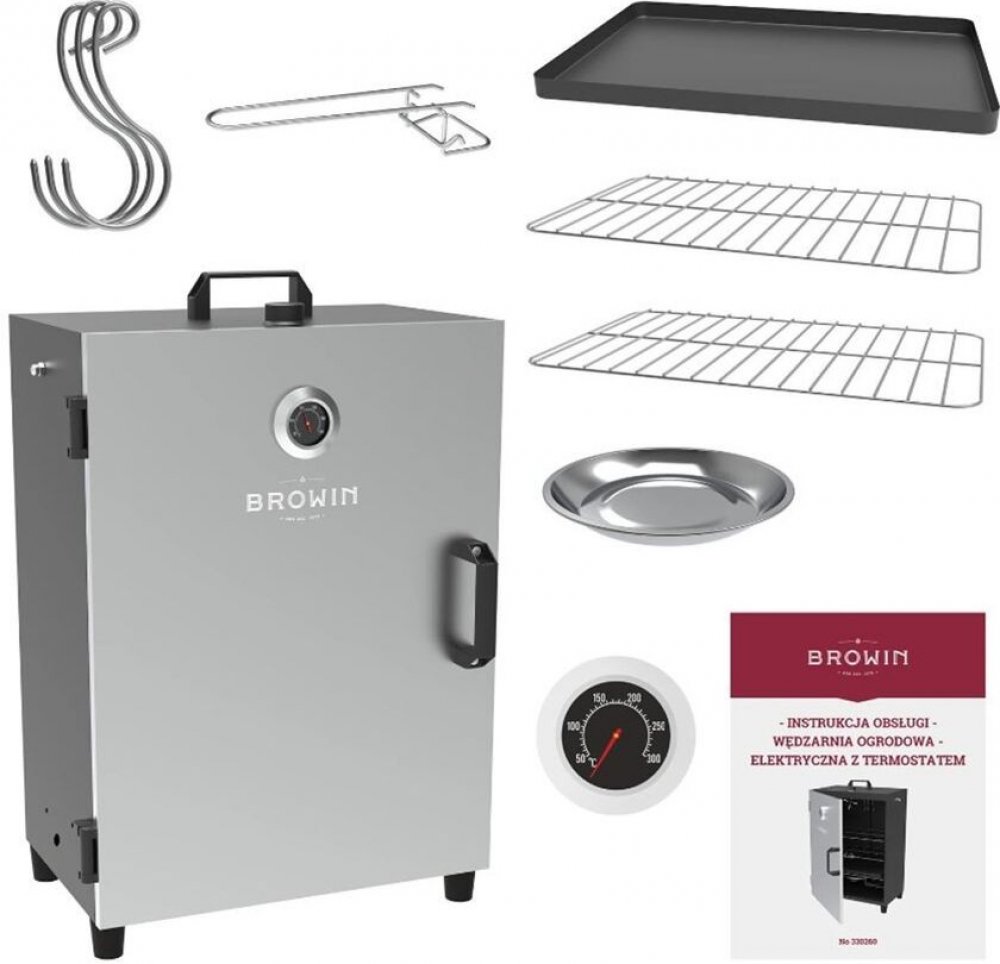 - Kompletní sada - výběrem naší udírny si vybíráte kompletní produkt vybavený 3 rošty, 1 tácem, 1 tácem na štěpku, 3 háčky a madlem, které vám umožní bezpečně vyjmout horký rošt! Udírny » Nerezové a kovové udírny » BROWIN Nerezová automatická udírna s termostatem