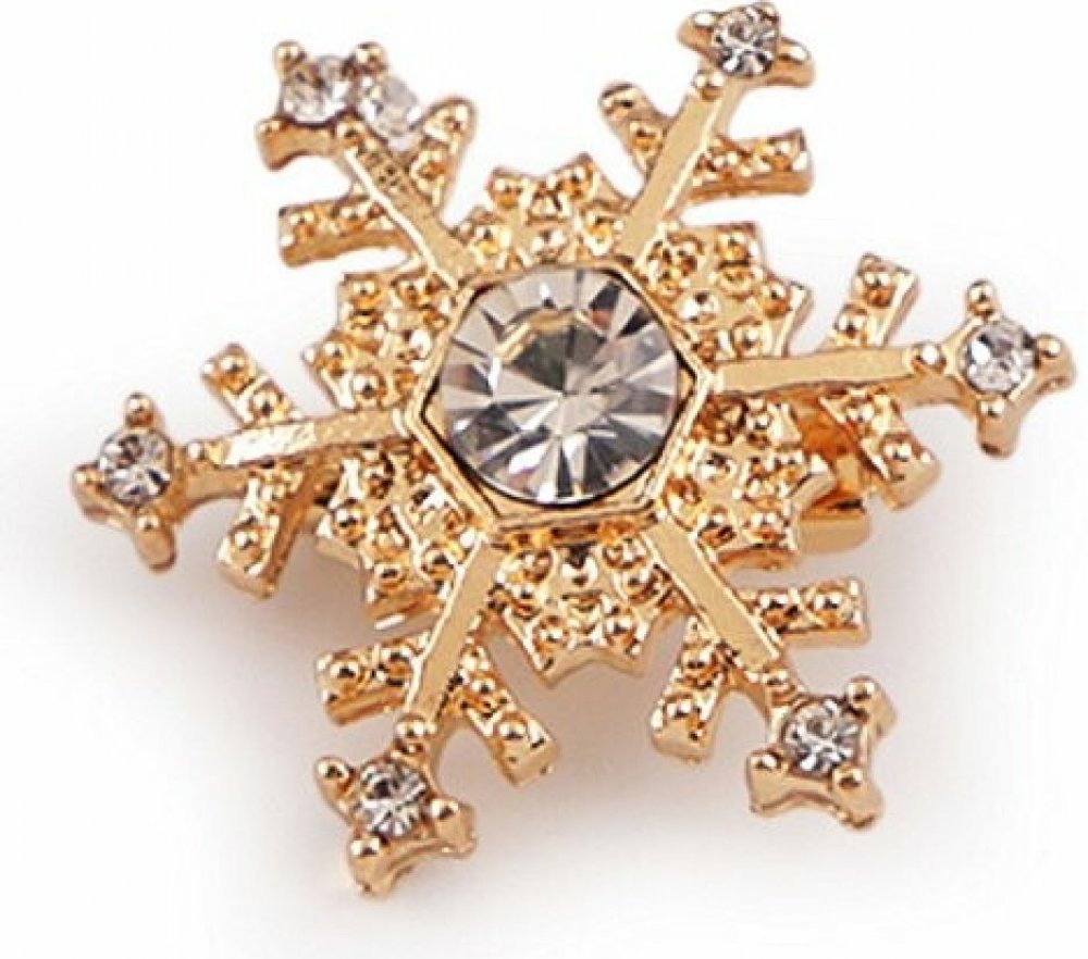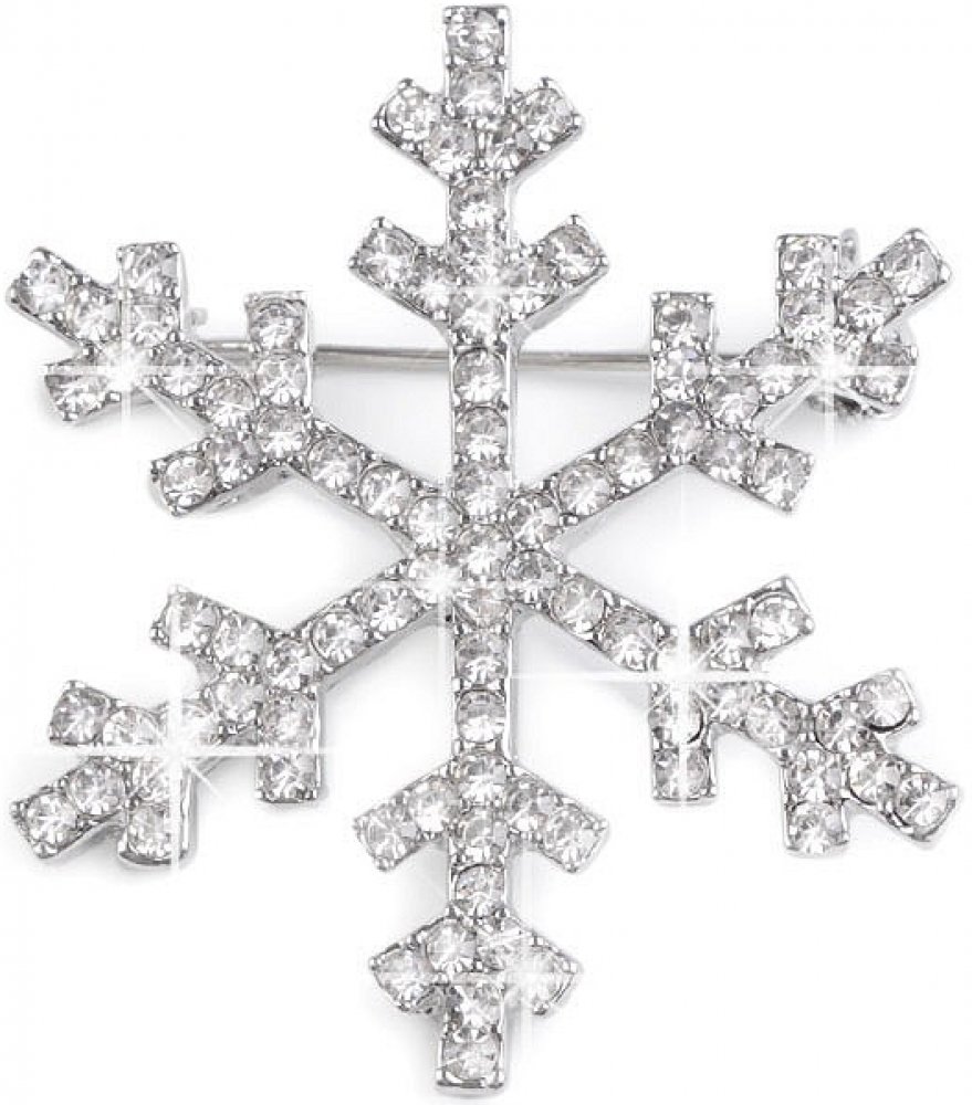 Třpytivá brož s vločkou je osázená broušenými kamínky. Na zadní straně má brožový špendlík, na kterém je pojistka proti nechtěnému otevření.