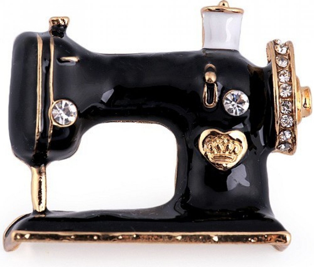 Smaltovaná brož šicí stroj bude skvělým dárkem nejen pro švadlenku. Ocení ji i ženy, které milují vintage styl. Je decentně ozdobená broušenými kamínky, díky kterým se jemně třpytí. Z rubu má zavírací špendlík s pojistkou proti otevření.