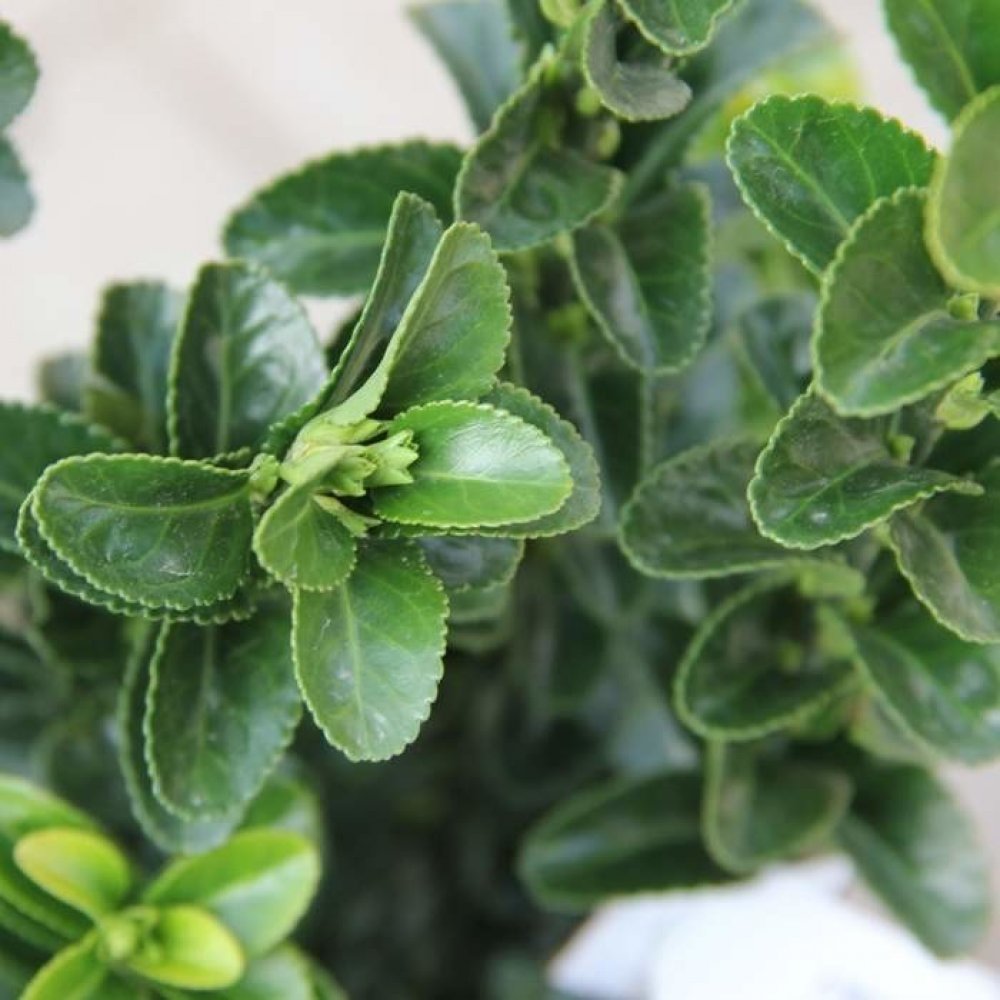 Latinsky: Euonymus japonicus 'Benkomasaki'Stálezelený japonský brslen dorůstající výšky 50-100cm. Listy jsou tmavě zelené, pevné a lesklé. Není náročná na stanoviště. Půdy by měly být propustné, mírně vlhké.