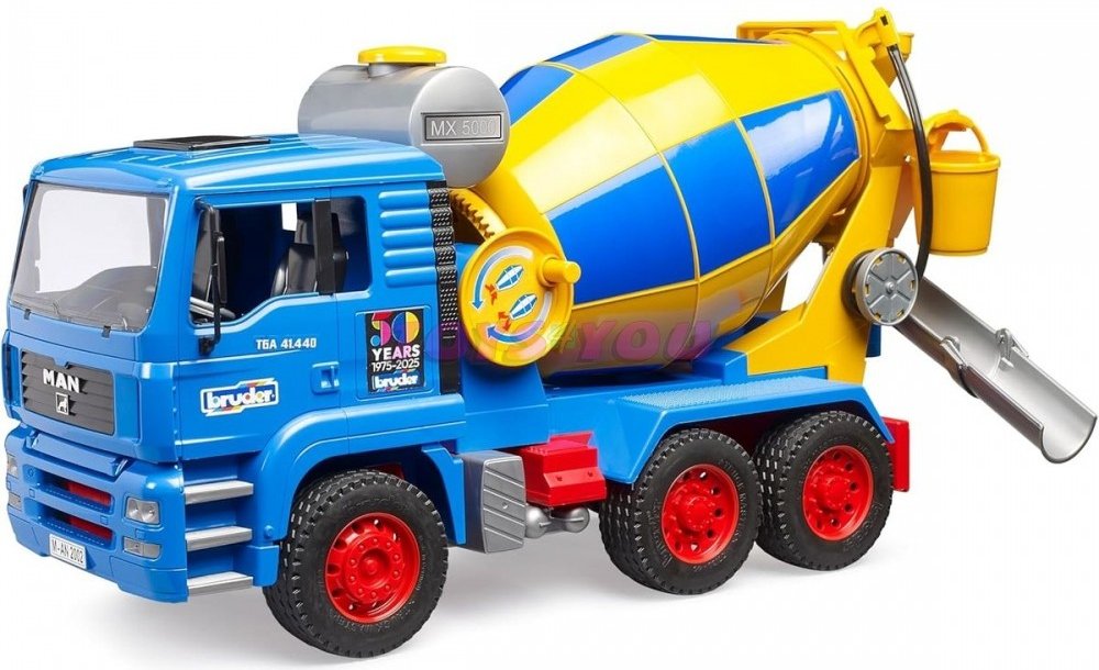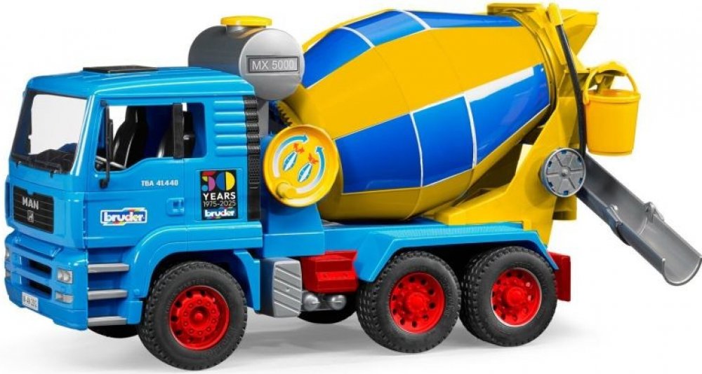 Sklápěcí kabina pro řidiče umožňuje napínavý pohled do detailně navrženého motobloku a postará se o ještě více zábavy při hraní Pomocí ruční kliky v nádržce na vodu lze buben otáčet, zatímco integrovaný šnek pohybuje plnicí nádobou Obrácením směru otáčení se materiál dopravuje dozadu a cíleně je odváděn pomocí dvou napojitelných výpustných plechů Model je založen na MAN TGA, který díky svým realis...