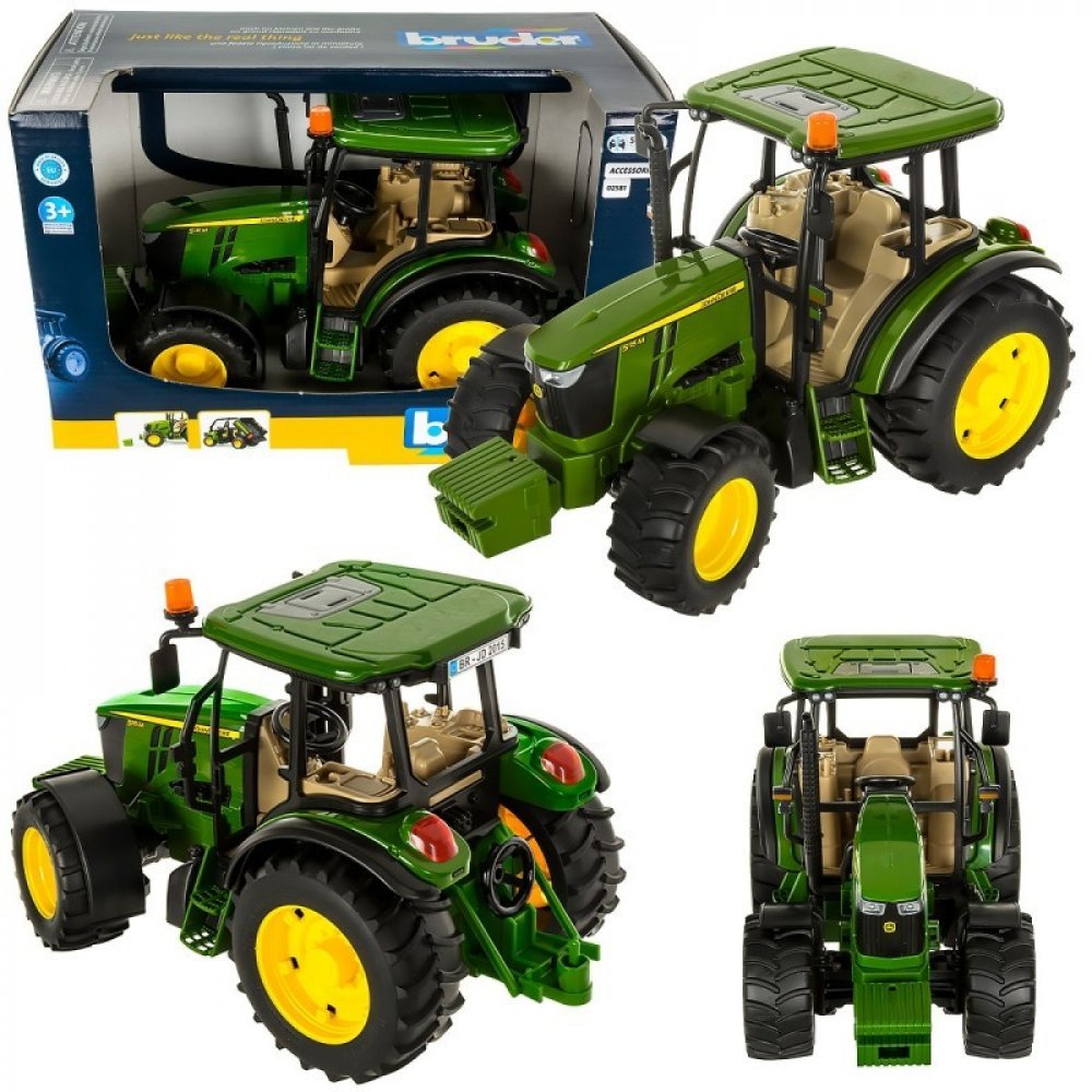 Velmi oblíbený model traktoru John Deere je všestranným pomocníkem nejen v zemědělství. Vyniká detailním zpracováním a možností připojení bohatého příslušenství. Ovládání pomocí prodloužené tyče řízení vedoucí skrz střechu. Najdete na něm držák pro připojení čelního nakladače, závěsné zařízení či odnímatelné přední závaží.