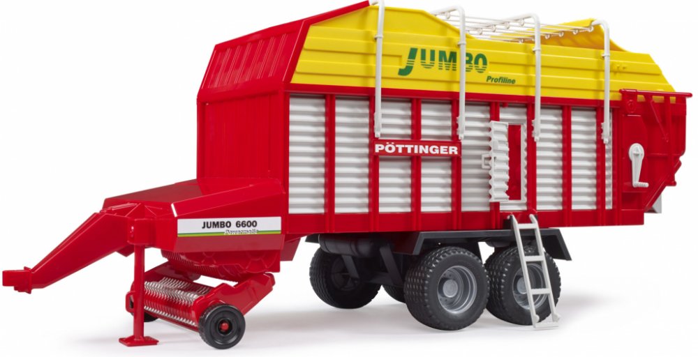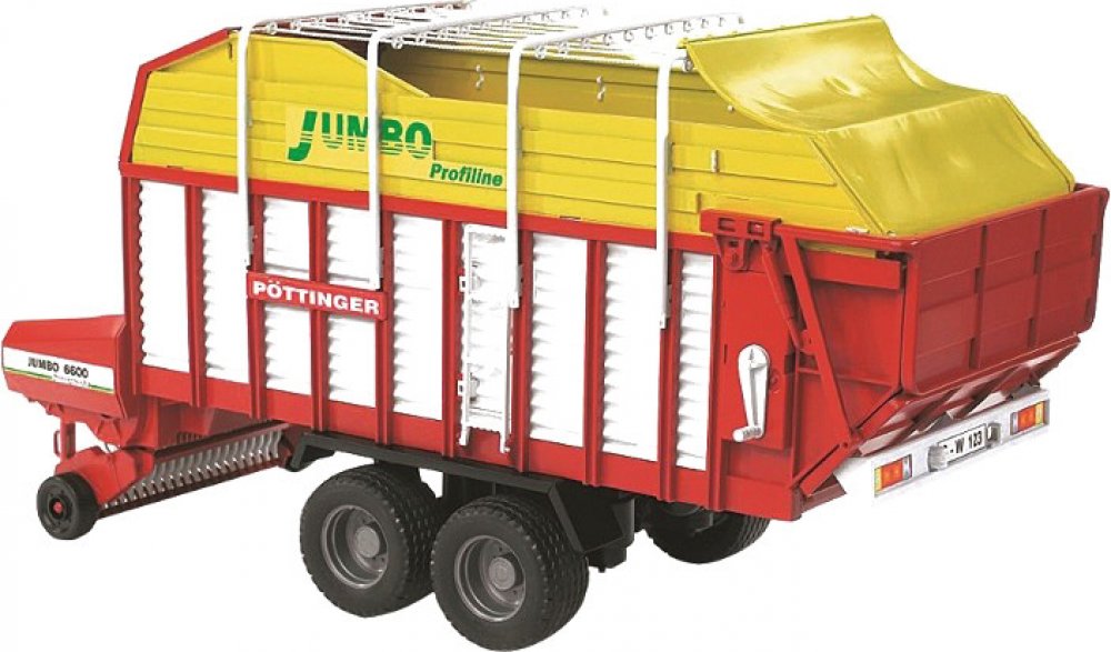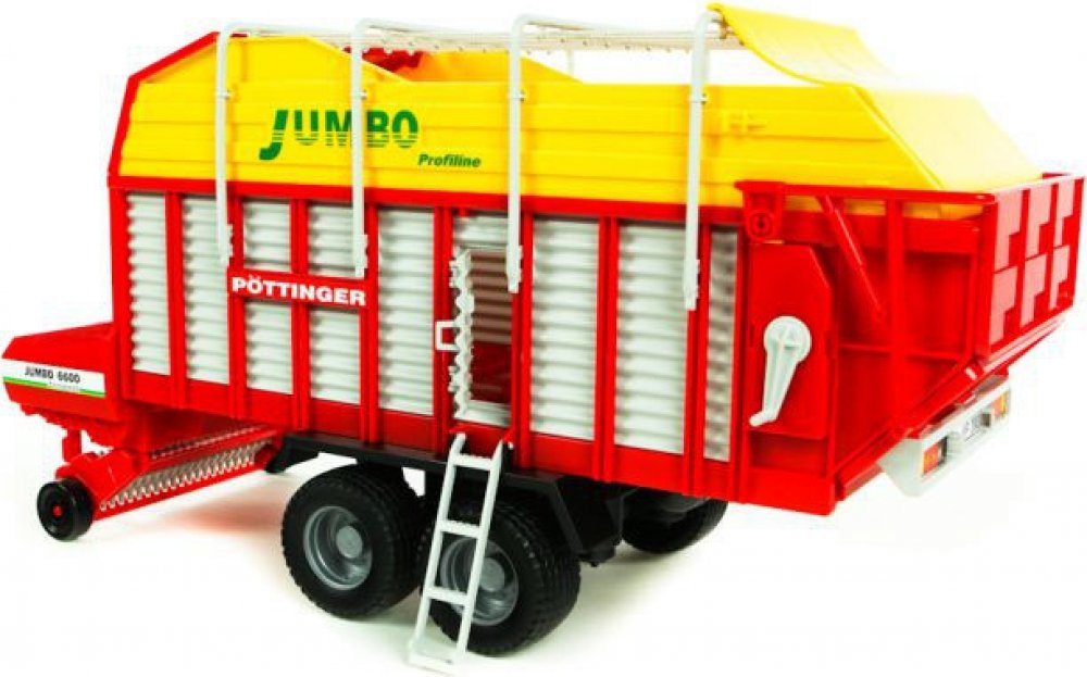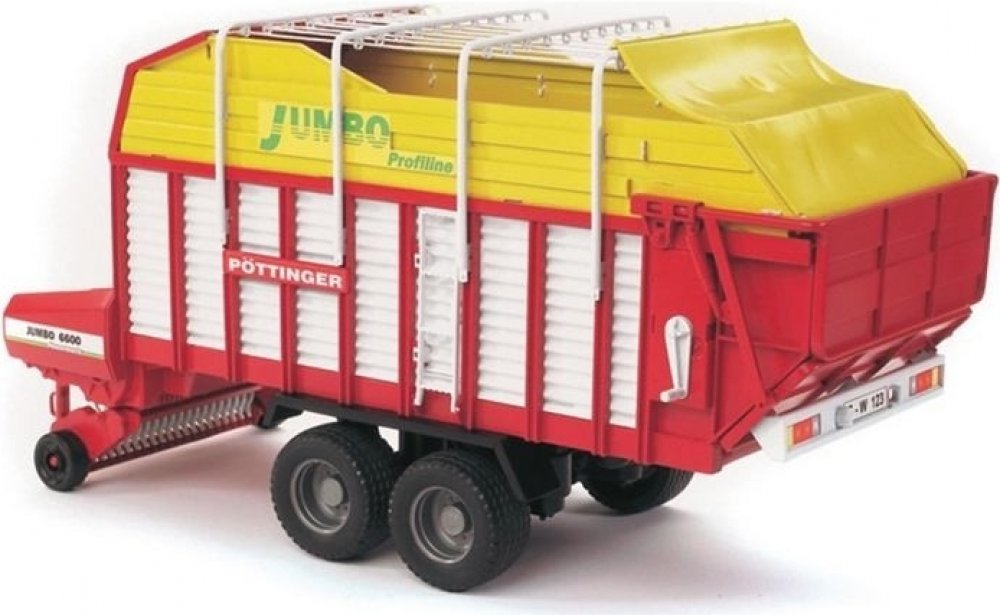 Farmer - Jumbo Profiline přívěs pro přepravu krmiva 1:16. Tento přívěs pro přepravu krmiva se pyšní nejen skvěle barevným designem, ale především svými funkcemi. Je vybaven sklápěcí opěrnou nohou, která slouží pro dokonalou stabilitu celého vozu. Boční stěny je možné otevřít, navíc je zde umístěn žebřík. Pomocná držadla na střeše je možné odejmout, zadní část je pak možné bez problému otevřít. Vůz je vybaven pevnými profilovými pneumatikami, které se přizpůsobí i náročnějšímu terénu. Tento vůz je snadno kombinovatelný se všemi traktory Profi série BRUDER. Je vyroben z vysoce odolného a kvalitního plastu. Vhodný pro interiér i exteriér.