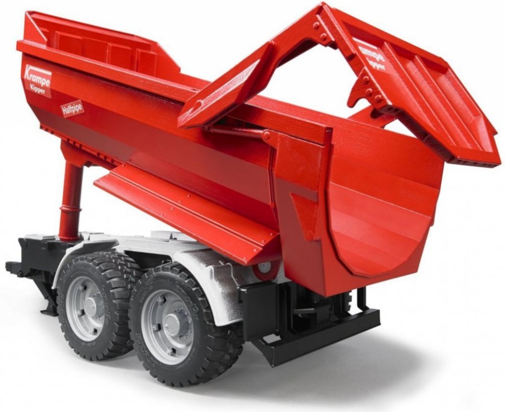 Sklápěcí přívěsy Halfpipe se stávají stále oblíbenějšími pro efektivní manipulaci se zemními pohyby. Zejména na bažinatém a obtížném terénu se často upřednostňuje kombinace výkonného tahače s návěsem s tandemovou nápravou před kamionem. Tento přívěs se, ale také často vyskytuje v zemědělství. Model BRUDER se vyznačuje detailním designem a stejně jako originál má stejné výhody pro výkonný pohyb zem...