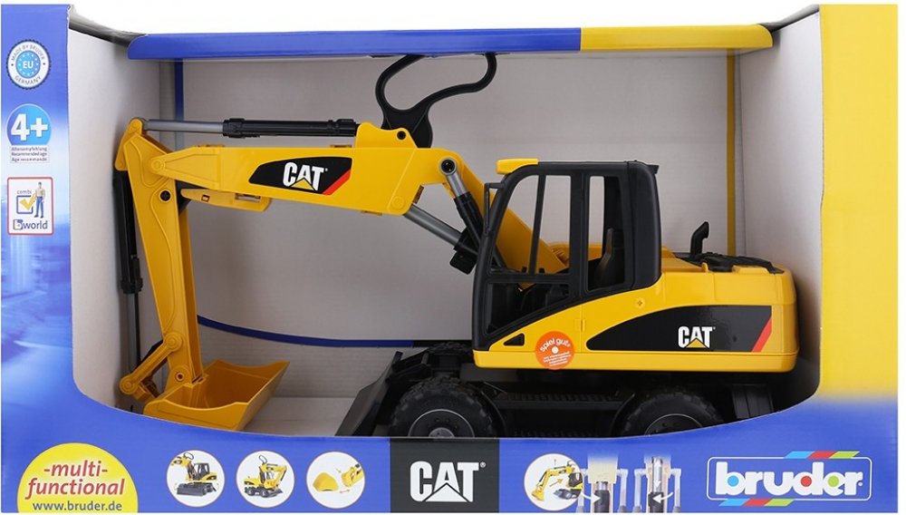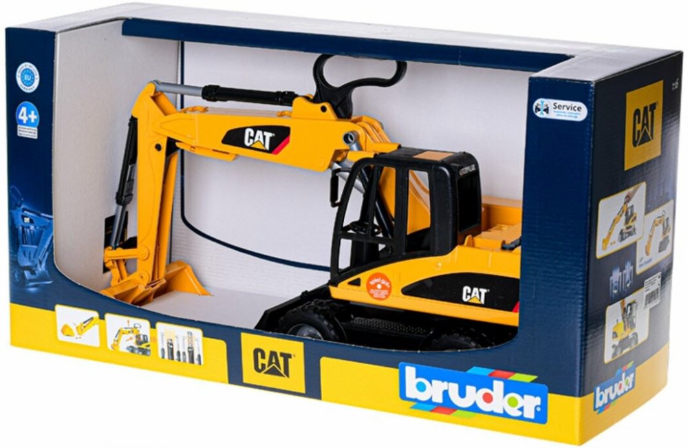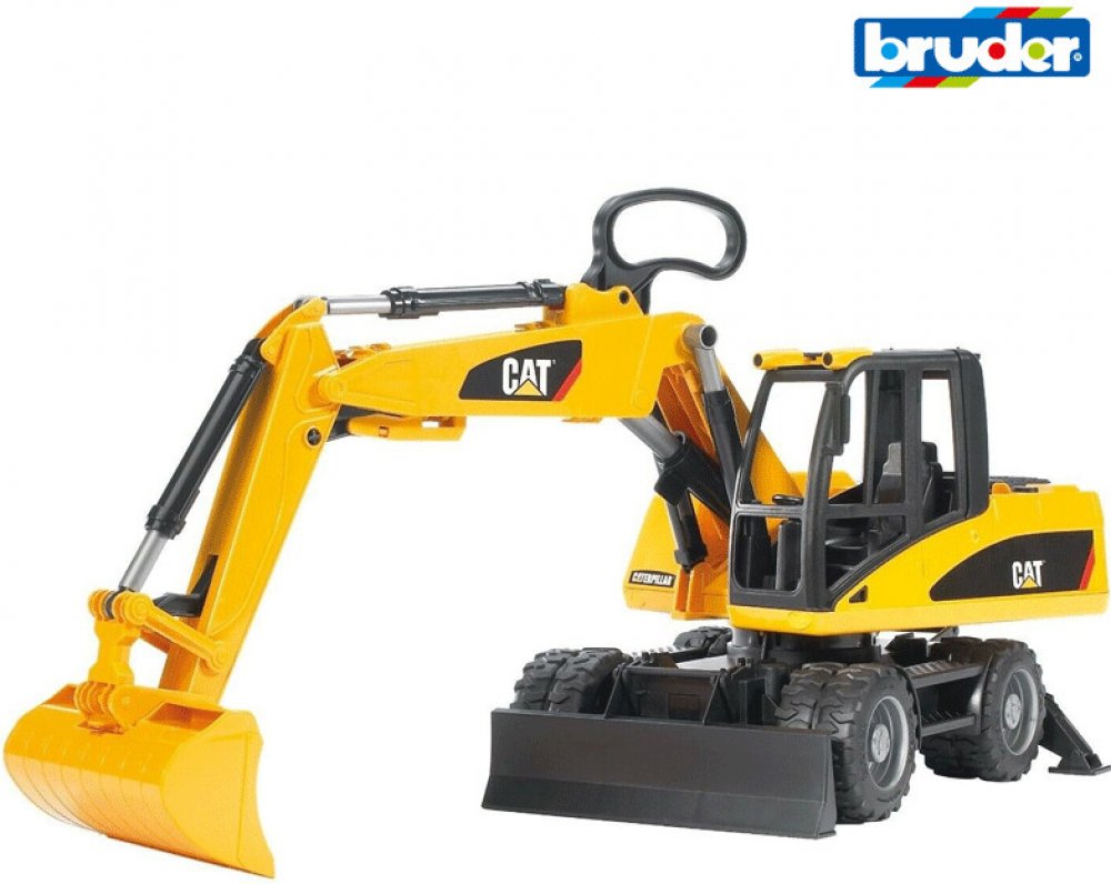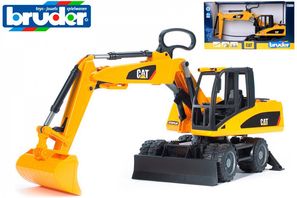 Caterpillar kolový bagr BRUDER 2445 je klasický čtyřkolový bagr firmy BRUDER, který nabízí plno detailů: otočnou kabinu o 360 stupňů, stabilizační nohy, profilové pneumatiky, odnímatelnou lžíci, nastavitelné rameno a nastavitelnou zadní radlici. Kvalitní a detailní zpracování kolového bagru Caterpillar firmy BRUDER zaručí komfortní jízdu v terénu i domácím prostředí.