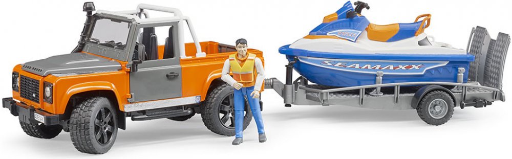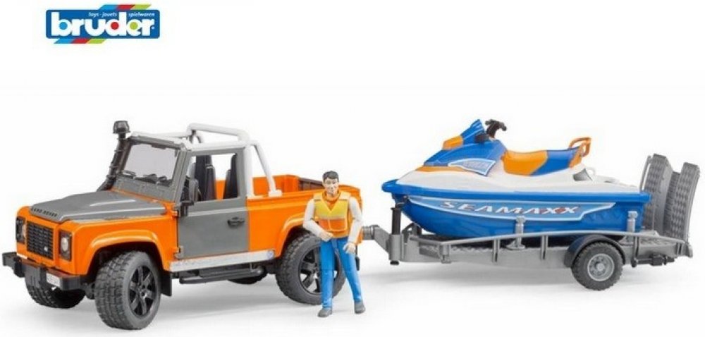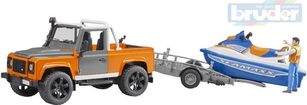 Bruder 2599 Land Rover s přívěsem vodním skútrem a jezdcem