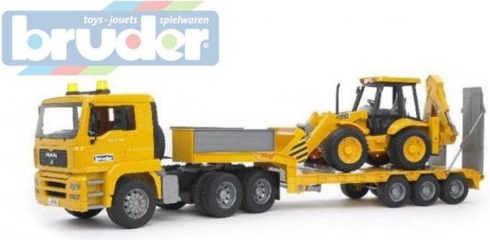 Podvalníky jsou často používání k řešení složitých úkolů jako je doprava velkých stavebních strojů mezi staveništi. Proto BRUDER zavádí nové model této řady - MAN TGA podvalník s traktorbagrem JCB 4CX. Tento impozantní vůz má známé vlastnosti MAN podvalníku jako plně funkční točnice návěsu, pohyblivé opěrné nohy a nakládací rampy.