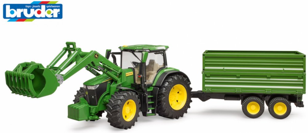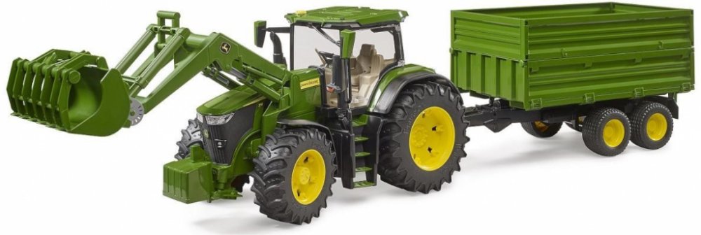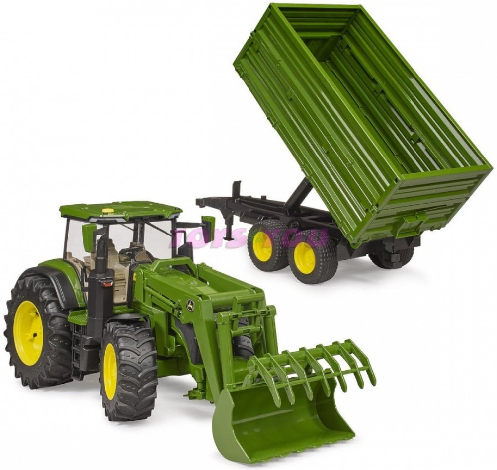 Bruder 3155 Traktor John Deere 7R 350 s čelním nakladačem a přívěsem