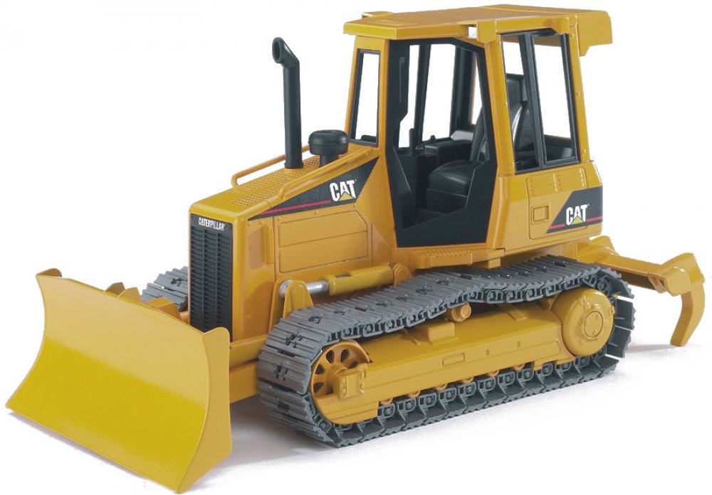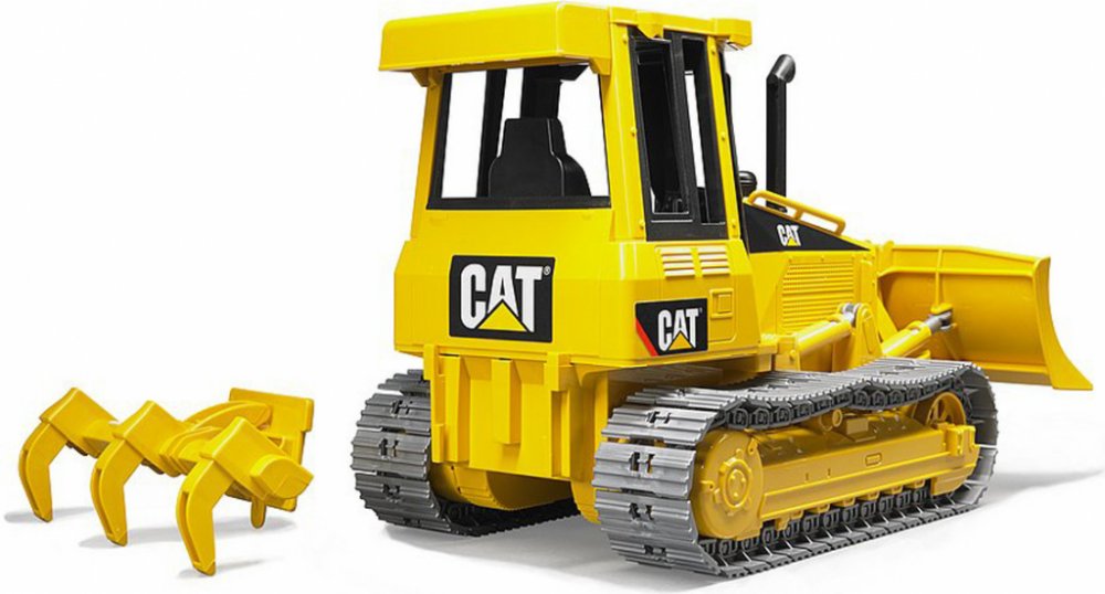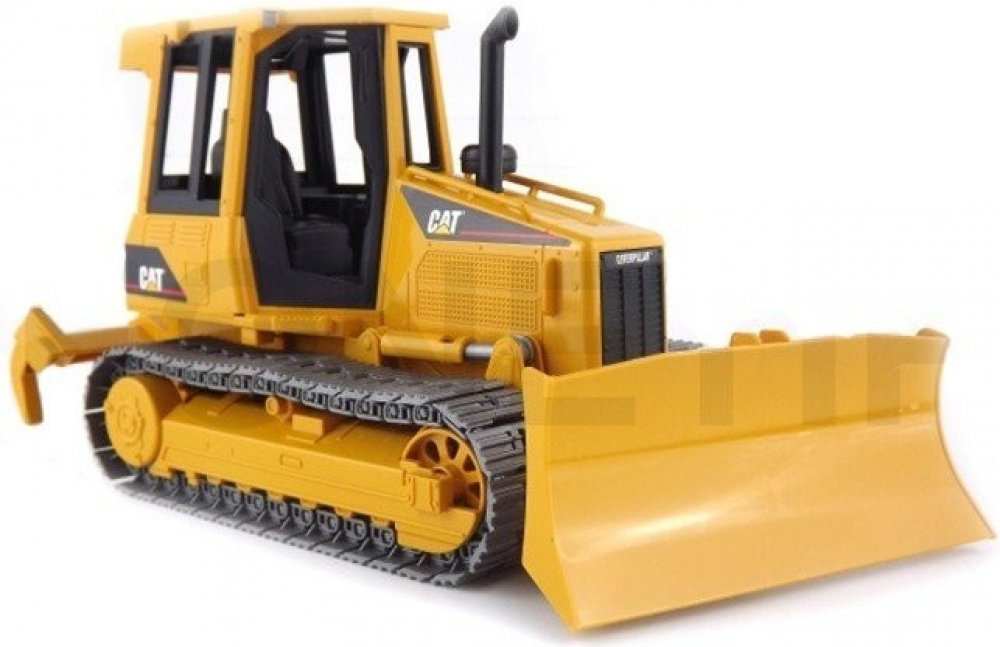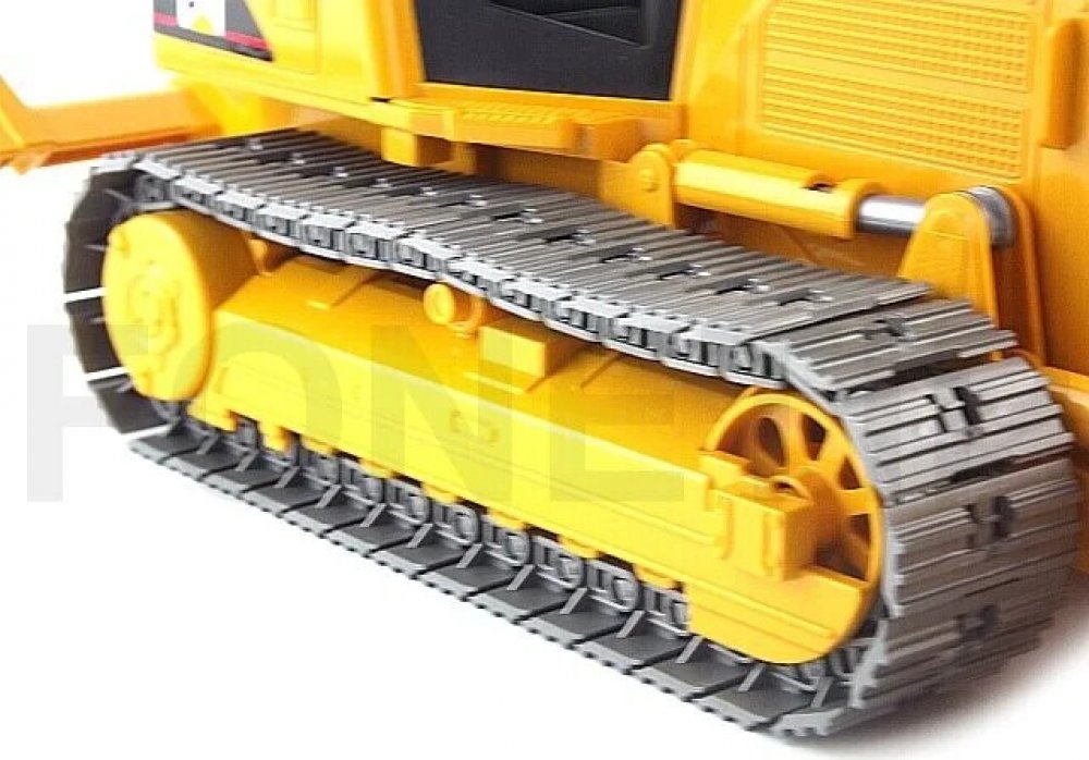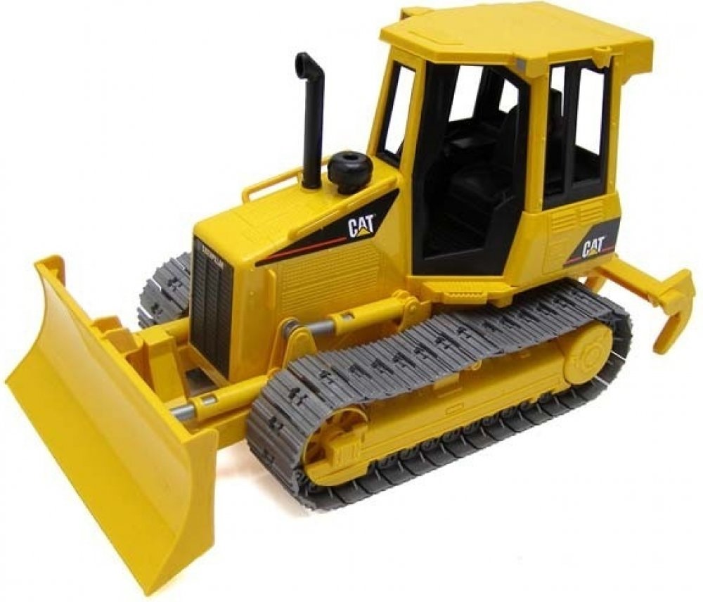 Buldozer CATERPILLAR s plně pohyblivou přední radlicí a zadními háky. Radlici lze zvedat a také natáčet do boku. Pásy jsou složené z jednotlivých článků a jsou plně funkční.