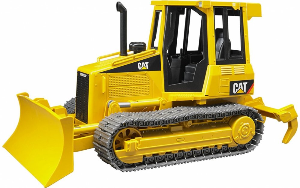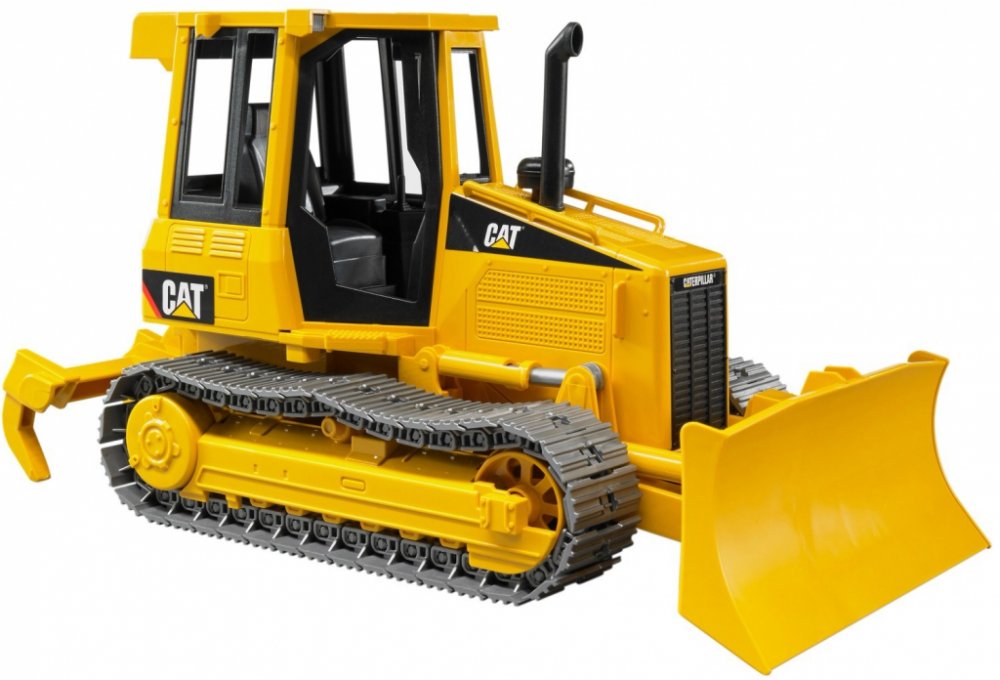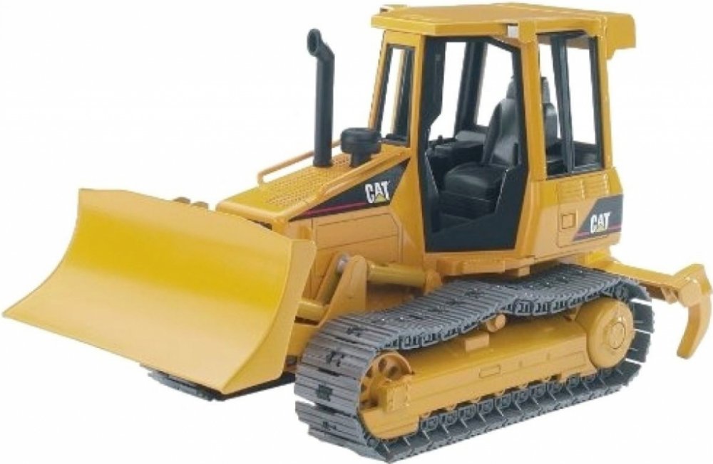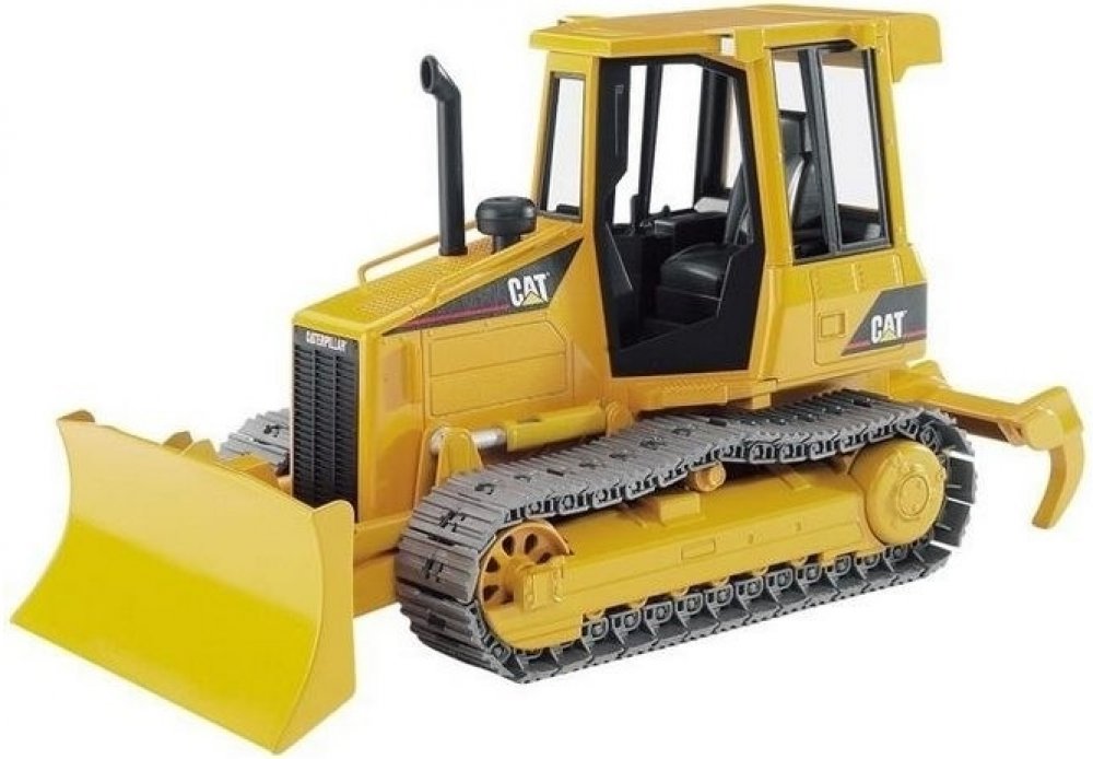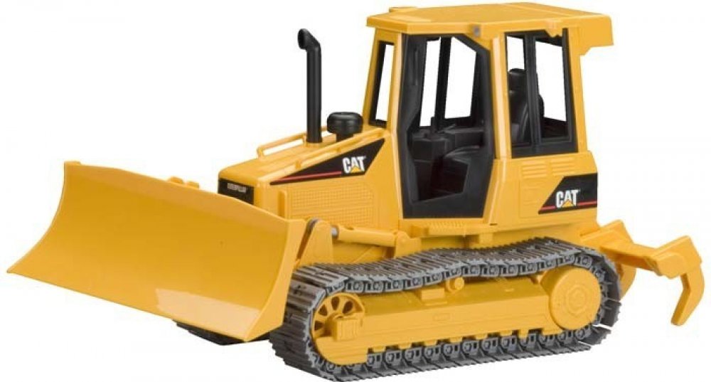 Buldozer CATERPILLAR s plně pohyblivou přední radlicí a zadními háky. Radlici lze zvedat a také natáčet do boku. Pásy jsou složené z jednotlivých článků a jsou plně funkční.