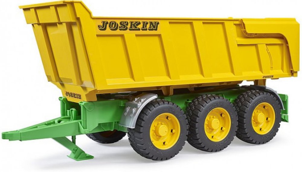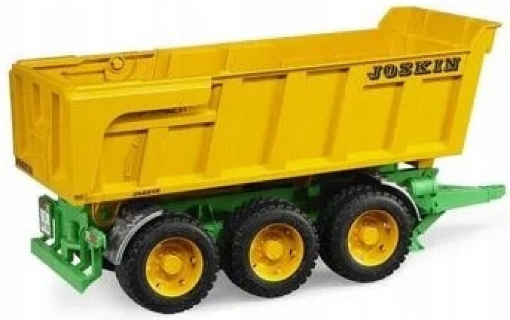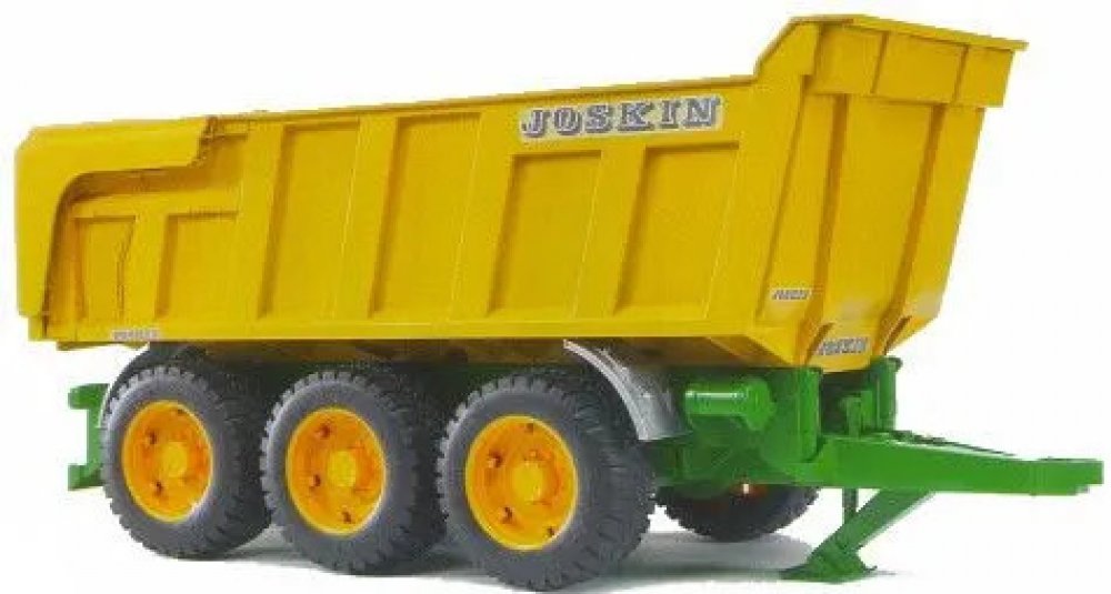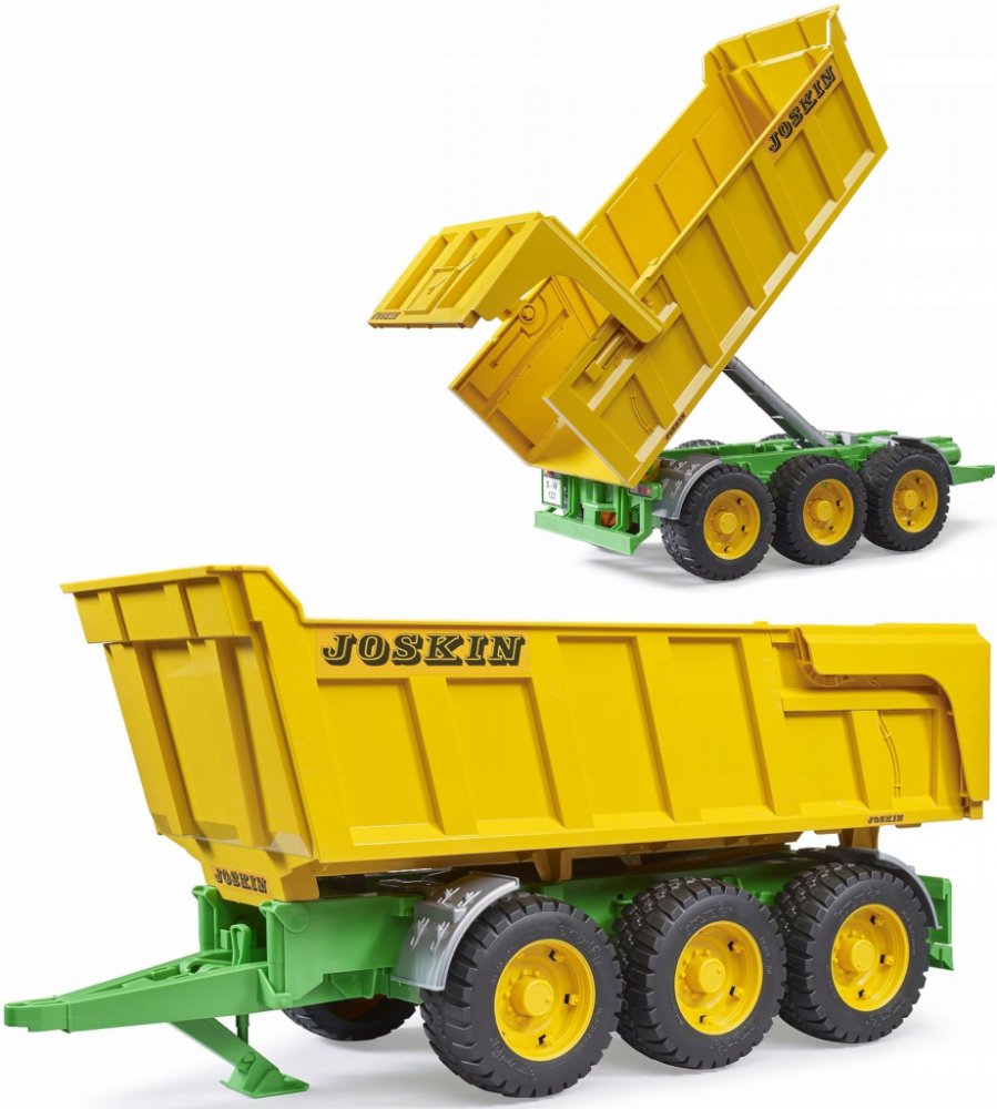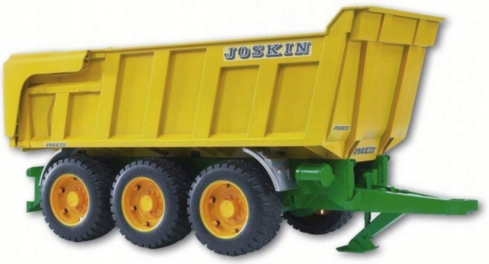 Jedním z největších a nejtěžších vyklápěcích přívěsů na trhu je 3-nápravový vyklápěč od belgického výrobce Joskin. Tato monstra určená pro těžká břemena a přepravu v extrémních podmínkách, například při práci ve stavebnictví nebo pro zemědělské využití v těžkém terénu, mají původně užitečnou hmotnost až 24 tun nebo ložný objem až 29 metrů krychlových. Impozantní model BRUDER byl vyvinut dle původní série Trans-SPACE. Má sklopnou a uzamykatelnou korbu s automatickým otevíráním zadní klapky. Třínápravový podvozek vyrovnává všechny nerovnosti v terénu. Tento vyklápěcí přívěs se hodí k špičkovým profesionálním traktorům nové generace, které jsou dostupné od podzimu 2004 a našli si již mnoho nadšených zákazníků. Ale traktory řady Profi a naše Unimogy (pomocí spojovacího adaptéru) jsou také vhodné jako tažná vozidla. Vyrobeno z vysoce kvalitního plastu ABS, profilované pneumatiky.