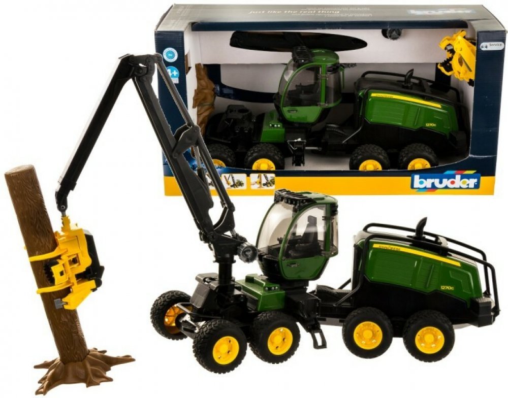 Bruder 2135 John Deere 1270G Harvestor má v lesnictví dlouhou historii. 8kolová verze modelu 1270 G nabízí maximální stabilitu a schopnost stoupání v obtížném terénu. Kabinu řidiče lze otáčet a prostřednictvím otevíratelných dveří má volitelně dostupná figurka bworld přístup k vysoce modernímu kokpitu. Podvozek je vybaven kyvadlovými nápravami a pneumatikami pro obtížné operace. Sklízecí jednotka ...