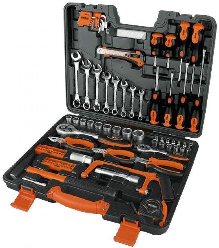 Celá sada se skládá z 89 různých prvků, které zajistí správný výběr nářadí pro vaše potřeby. Nářadí je vyrobeno z kalené chrom-vanadiové (CrV) oceli určené pro dílenské nářadí. Chrom zaručuje oceli odolnost vůči korozi, oxidaci, oděru a vysokou odolnost vůči vysokým teplotám. Přídavek vanadu inhibuje růst zrn během zpracování a zároveň zvyšuje tažnost jak kalených, tak temperovaných forem.