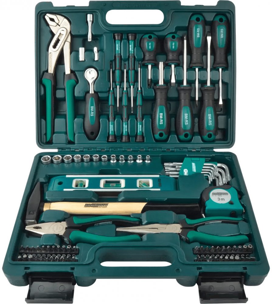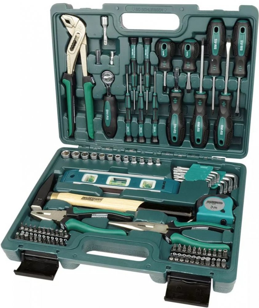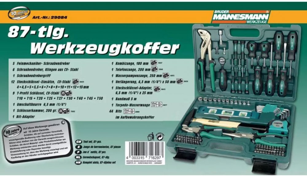 Kufr s nářadím Green Line je ideální pro všechny domácí i hobby práce. Tento praktický kufřík obsahuje širokou škálu ručního nářadí, které je uspořádáno v robustním plastovém pouzdře. Spodní a horní skořepina kufru jsou vybaveny ručním nářadím, což zajišťuje přehledné a prostorově úsporné uspořádání.
