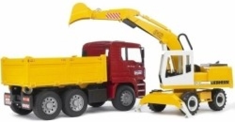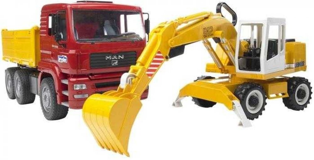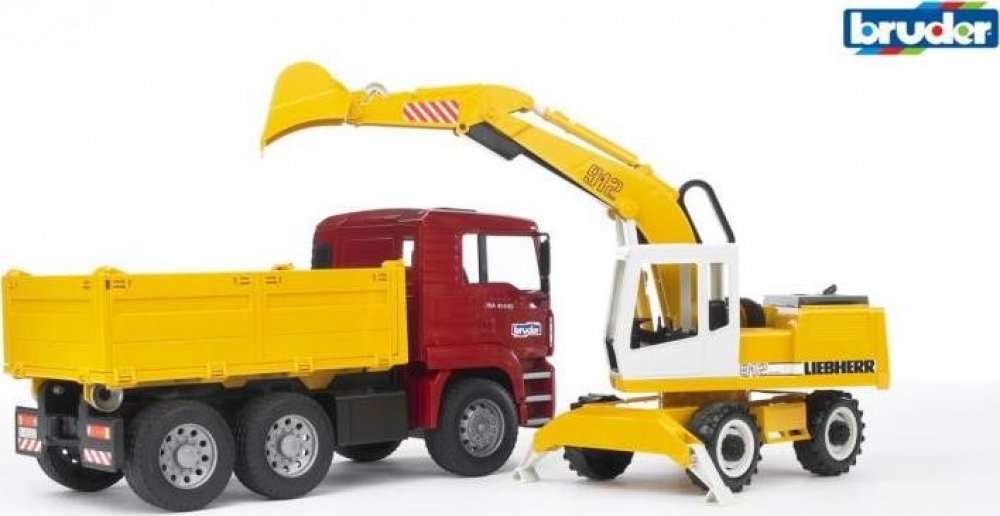 Nákladní auto MAN TGA je klasický sklápěč s měkkými pneumatikami a sklopnou korbou. Součástí setu je bagr Liebherr na nakládání materiálu. Bagr má stabilizační výsuvné opěrné nohy, profilové pneumatiky a funkční rýpadlo s otočnou kabinou. Kabina s plně funkčním ramenem se lžící se otáčejí o 360°. Doporučujeme k vozu dokoupit a nainstalovat světelný a zvukový maják br2801. Německá značka Bruder vyrábí realistické modely dopravních a stavebních prostředků nejvyšší kvality s tradicí rodinné firmy již 80 let. Hračky Bruder jsou navrhovány dle reálných strojů do nejmenších detailů s funkčními mechanickými vlastnostmi. Hračky Bruder a jejich příslušenství jsou mezi sebou kompatibilní a variabilní. Každý kluk je nadšený z modelů aut a strojů, ale značka Bruder dává něco víc - funkčnost, reálnost, detaily a kvalitu použitého materiálu. Značka Bruder rozčleňuje hračky do třech sérií - Bruder - RoundMax, Profi série a Mini série.