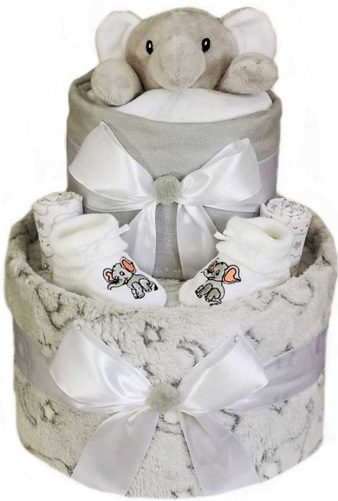 Dvoupatrový plenkový dort pro novorozené miminko Slůňátko