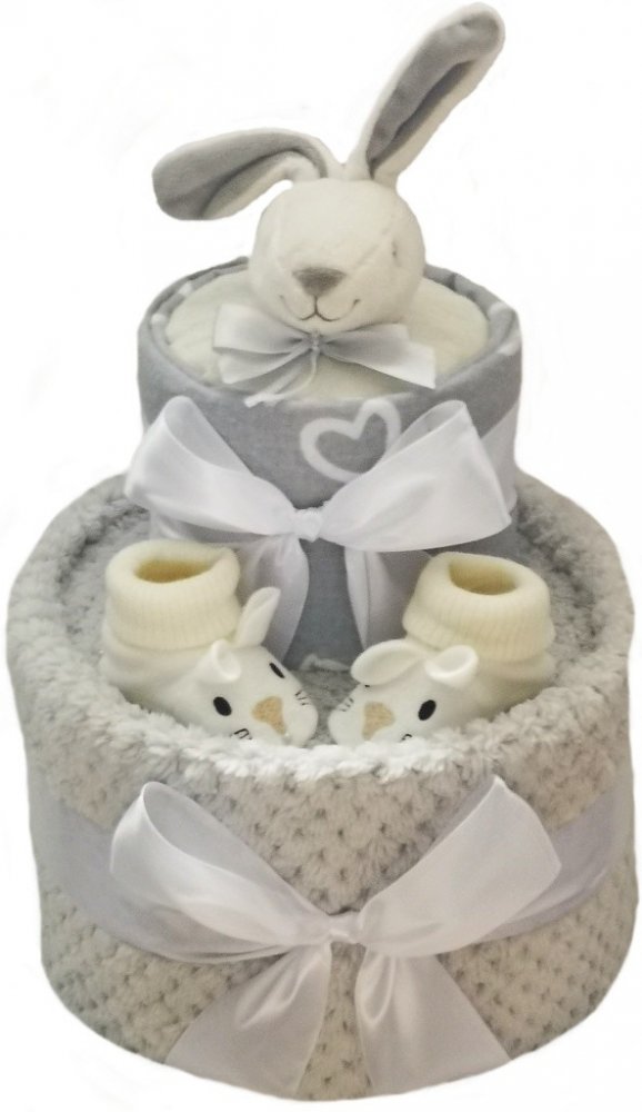 Dvoupatrový plenkový dort pro novorozené miminko Zajíček