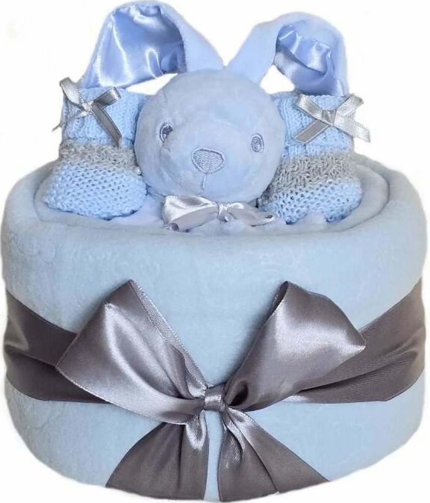 Jednopatrový plenkový dortík pro novorozené miminko Modrý zajíček minky