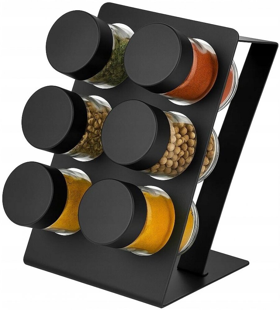 Elegantní a praktický stojan na koření v matné černé barvě je ideálním řešením do každé kuchyně. Vyrobeno z vysoce kvalitního kovu, kombinuje moderní design s trvanlivostí.