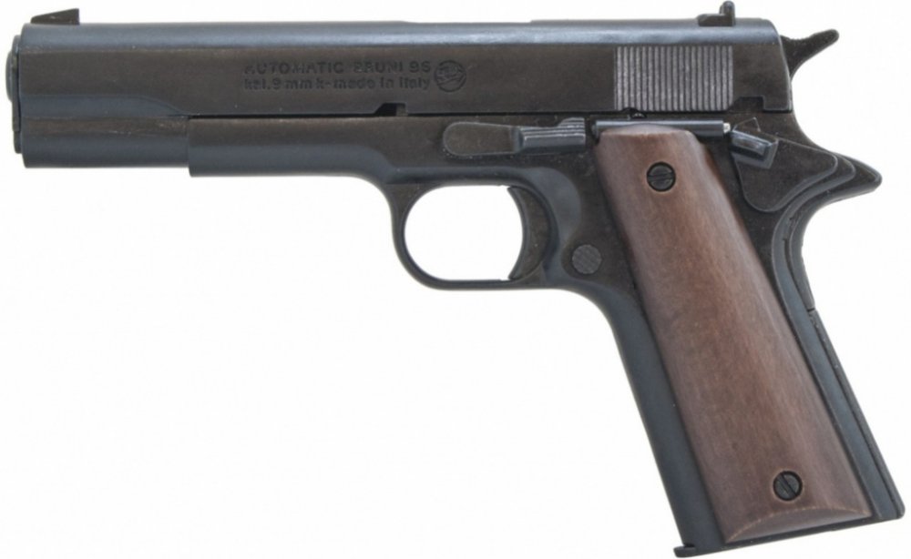 Plynová pistole Bruni 96 cal.9mm kat. PO černáSamonabíjecí plynová pistole celokovové kontrukce ze slitiny Zn-Al doplněná o dřevěné střenky.Černění povrchu zbraně je u Bruni opravdu realistické - takové jako u ostré verze.Bruni 96 je replikou velmi známého modelu Colt 1911 vyráběného od roku 1911 až do dnes. Ve verzi plynové pistole je vyrobená na náboje 9mm P.A.Kapacita zásobníku Bruni 96 je 8 ná...