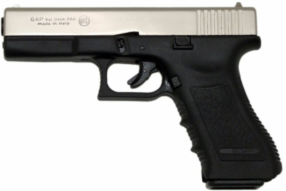 Plynová pistole Bruni GAP cal.9mm kat. PO bicolorPoloautomatická plynová pistole se systémem střelby Single Action - před prvním výstřelem je třeba natáhnout závěr, po stisku spouště se automaticky nabije a připraví k dalšímu výstřelu.Plynová pistole Bruni GAP je vyrobena ze slitiny kovů.Spodní část zbraně a pažba je pokryta speciálním tvrzeným plastem.Tento model Italského výrobce je replikou známé zbraně GLOCK.Bruni GAP patří mezi velké pistole, je vhodná především pro pořádné chlapy.Pistol není žádné nijak lehká, ale díky tomu má velkou kapacitu zásobníku a svým vzhledem působí jako pravá zbraň.Do zásobníku je možno napáskovat deset nábojů ráže 9mm P.A.K. a jeden do hlavně.Plynová zbraň Bruni GAP nám poskytne celkem až jedenáct obranných výstřelů.V přední části hlavně je vývrt, do kterého můžeme našroubovat nástavec na světlice.K tomuto modelu doporučujeme zakoupit opaskové nebo podpažní pouzdro pro pohodlné nošení.Italský výrobce BRUNI se vyznačuje převážně tím, že jeho plynové zbraně jsou vyráběny a opracovány tzv. hrubým stylem.Zbraň působí více autenticky a reálně k ostré zbrani, ale na někoho to může působit, že je zbraň starší používaná.
