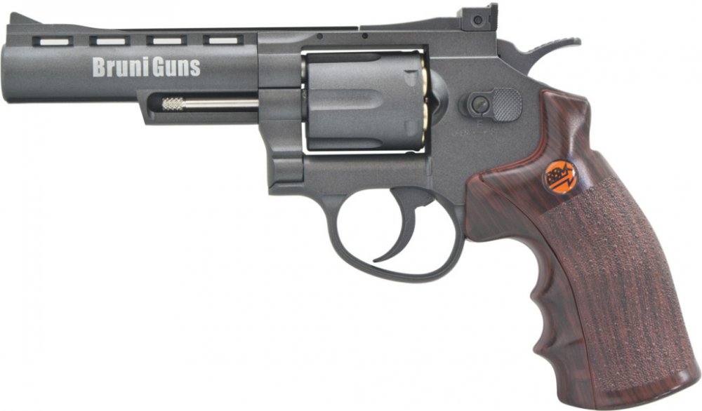 Bruni Super Sport 701 černý. Kvalitní celokovový revolver s realistickým nabíjením v černém provedení. Ocelové broky v ráži 4,5 mm vložíte do replik nábojnic, které se následně umístí do komor bubínku. Celý mechanismus je poháněn 12g CO2 bombičkou.…