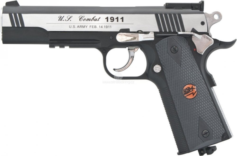 Vydařená celokovová replika legendární americké pistole COLT 1911 ve formě vzduchové CO2 pistole v kal. 4.5 mm/.177 značky Bruni model US Combat 1911 M. Ocelové broky se vkládají s bombičkou s obsahem 12 g CO2 do společného zásobníku. Pistole je vybavena zásobníkem s kapacitou 20 ocelových broků, manuální pojistkou proti nechtěnému výstřelu, systémem spouště SA (Single Action) / DA (Double Action)...