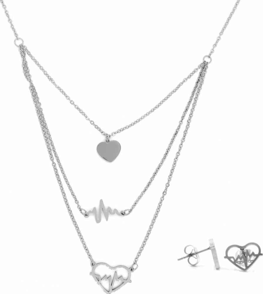 Ocelový přívěsek stříbrné barvy s povrchem zrcadlově lesklým a hladkým. Šperk je vhodný jako dárek. Dostanete v pěkné dárkové krabičce je z chirurgické oceli, má pěkný design a pěkně doplní váš outfit. Klíčové vlastnosti Ewena soupravy z chirurgické oceli - srdce EKGRozměry přívěsku - srdce s křivkou: 1,8 × 1,2 cmRozměry přívěsku - křivka: 1,6 × 1 cmRozměry přívěsku - srdce plné: 1 cmŘetízek má jemný obvod o délce 43 cm Rozměr náušnice: 1 cmMateriál: chirurgická ocelPěkné dárkové balení