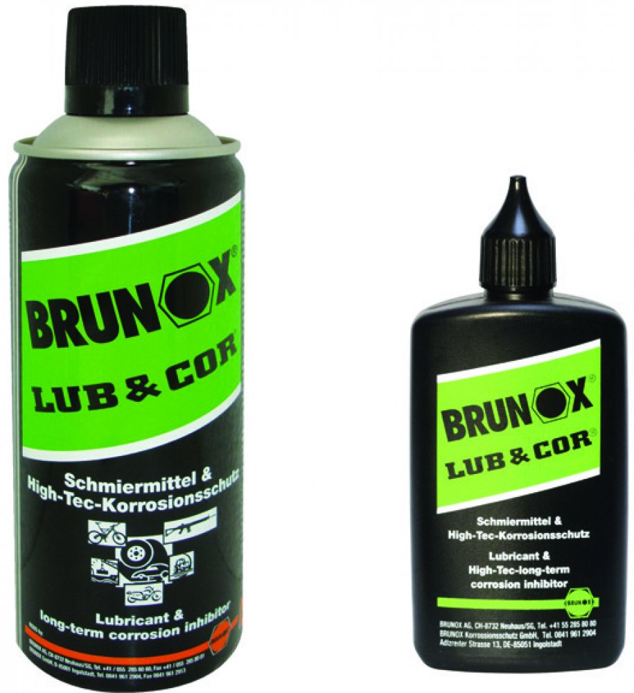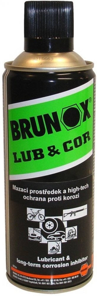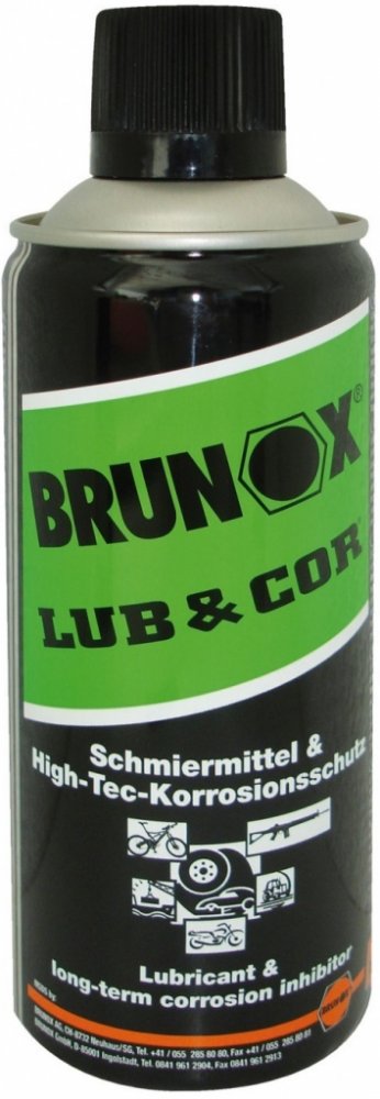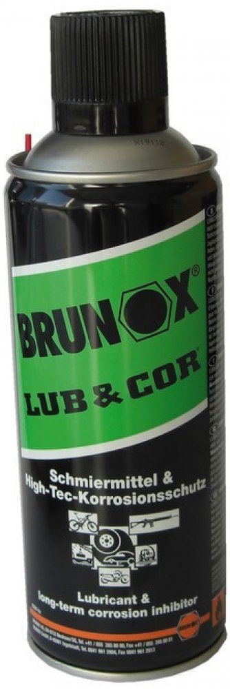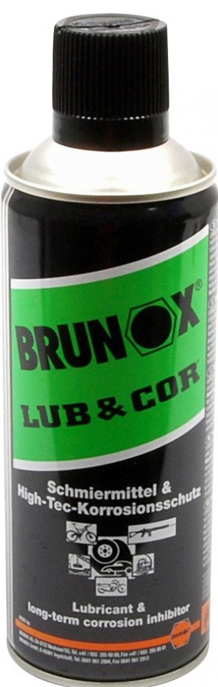 Brunox LUB & COR ochrana proti korozi. Vynikající inhibitor koroze se silnými přilnavostními vlastnostmi. Zvláště dobrý pro dlouhodobé skladování střelných zbraní ve vlhkém prostředí a agresivních klimatických podmínkách. Vytváří velice kompaktní nevysychající ochranný film. Perfektní mazadlo pro poloautomatické střelné zbraně.